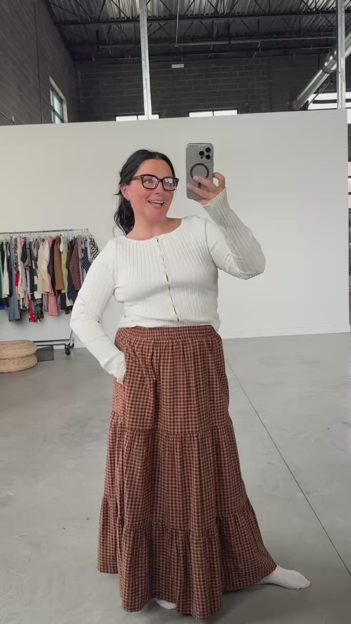 Carmen Gingham Skirt in Brown
