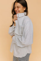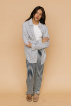 Details: Stripe men's button down. Nursing friendly & bump friendly. Lightweight