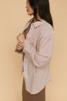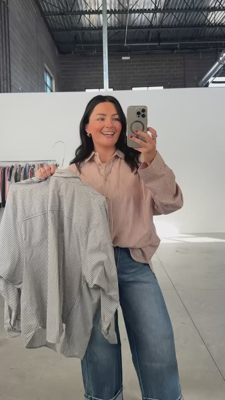 Details: Stripe men's button down. Nursing friendly & bump friendly. Lightweight