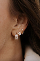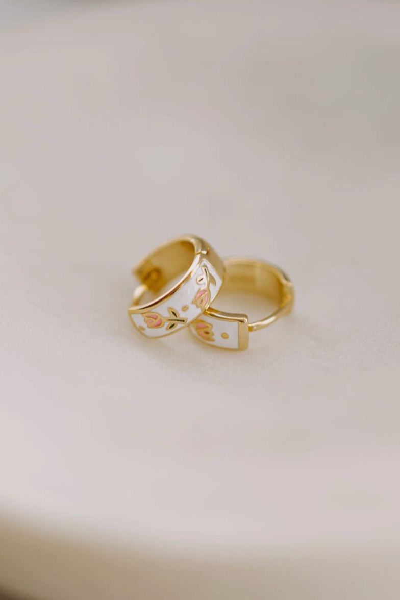 Pink tulips with a white enamel background. Gold vermeil (gold hoop with a sterling silver hypoallergenic base)