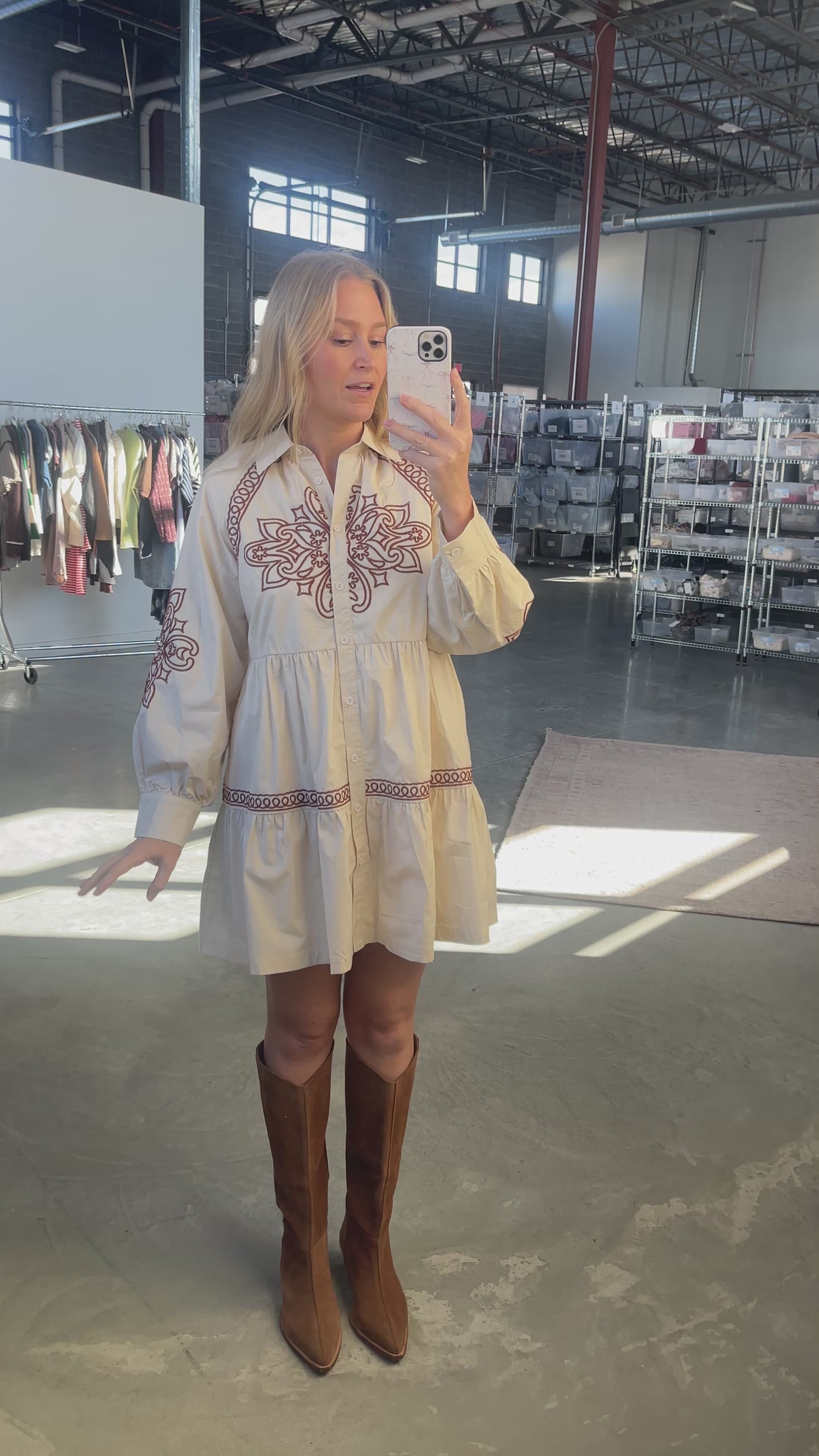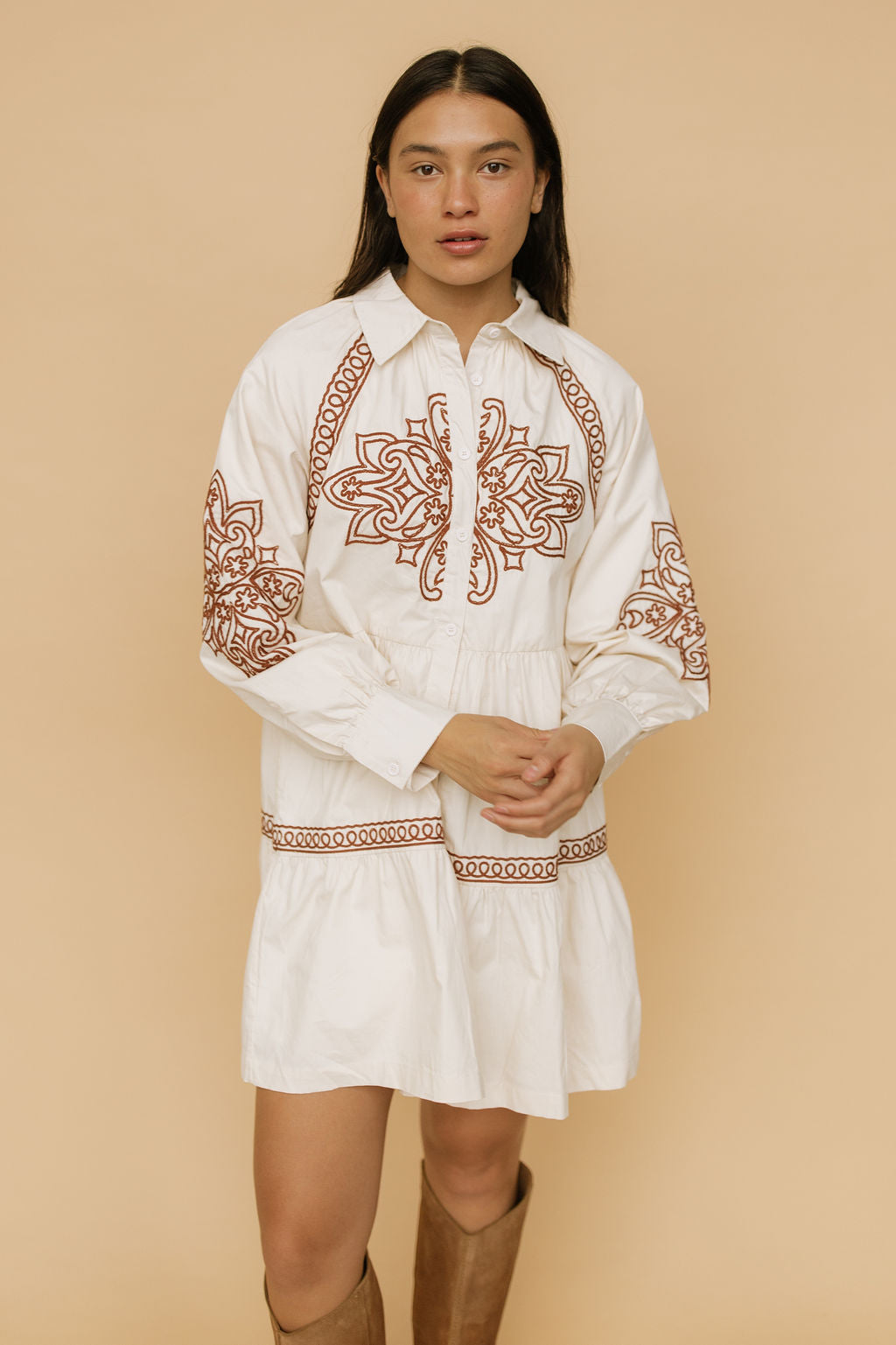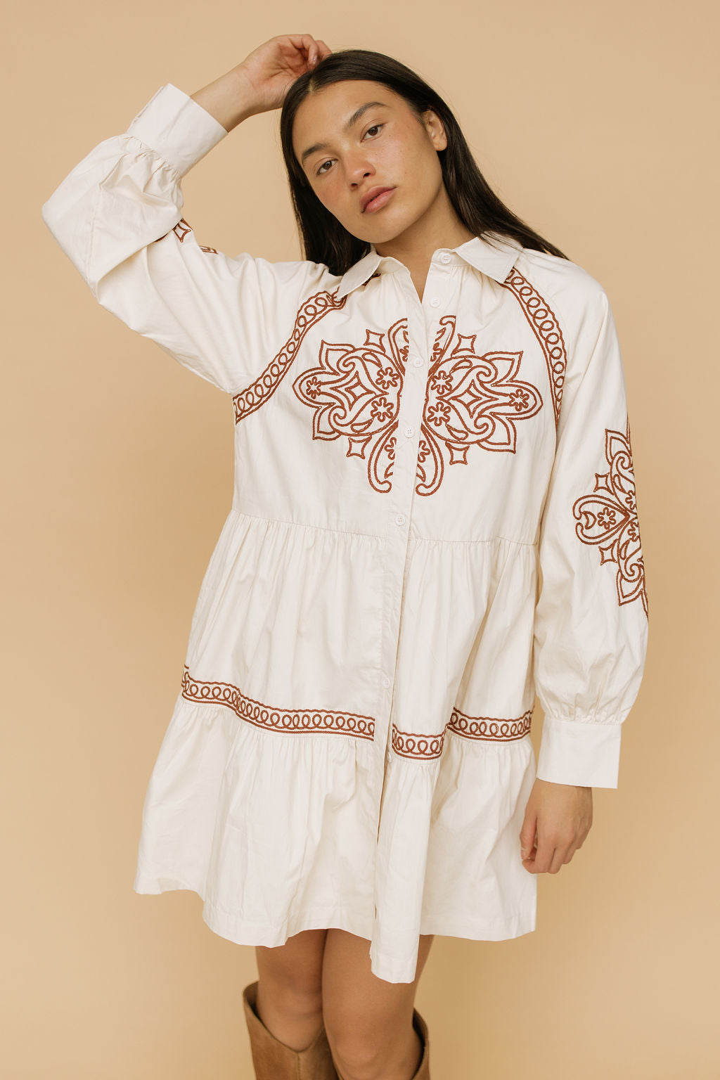 Details: Embroidered poplin shirtdress. Nursing friendly button down front.