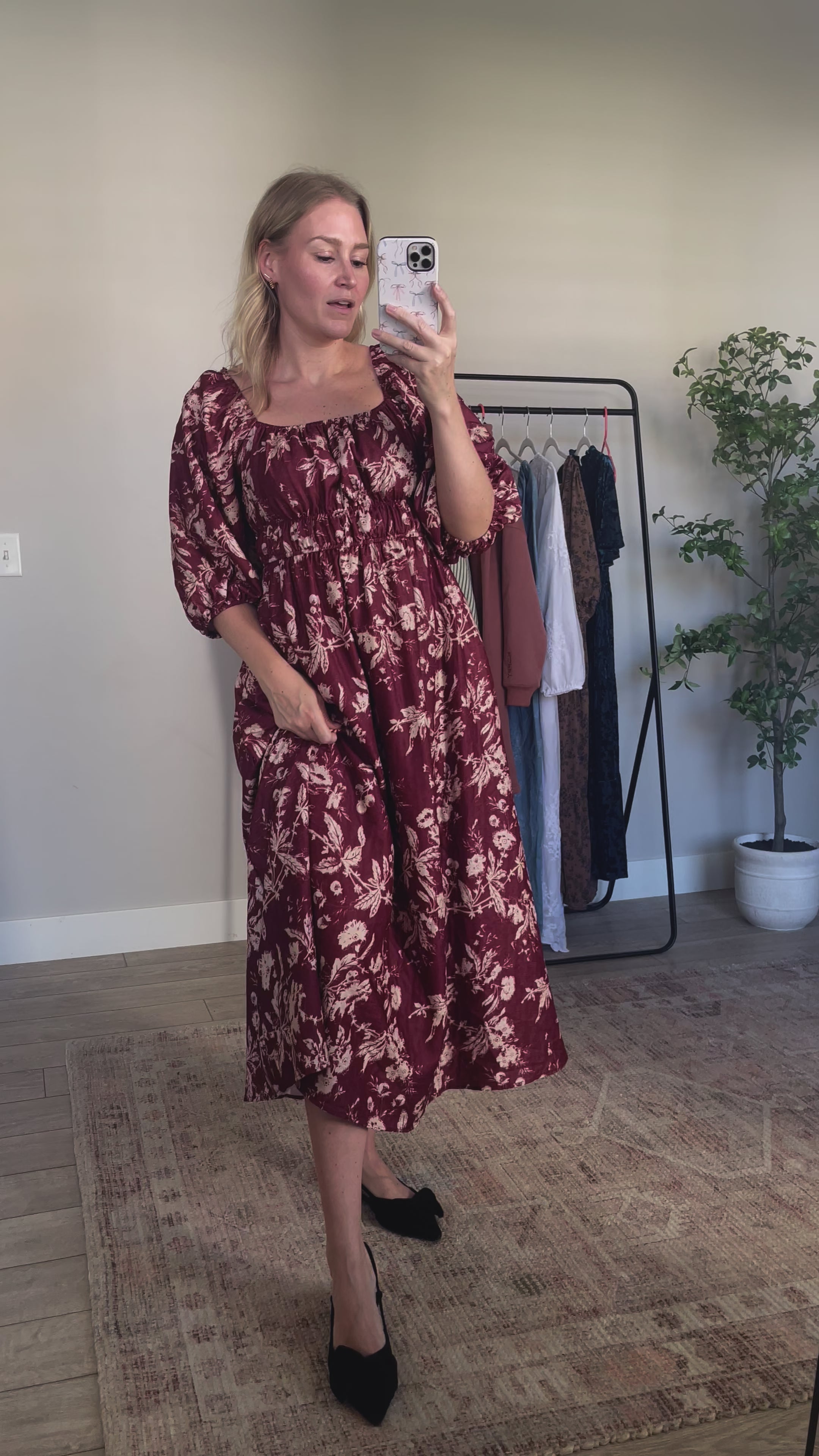 Our sizing suggestion: Good room in dress, nursing friendly bump friendly