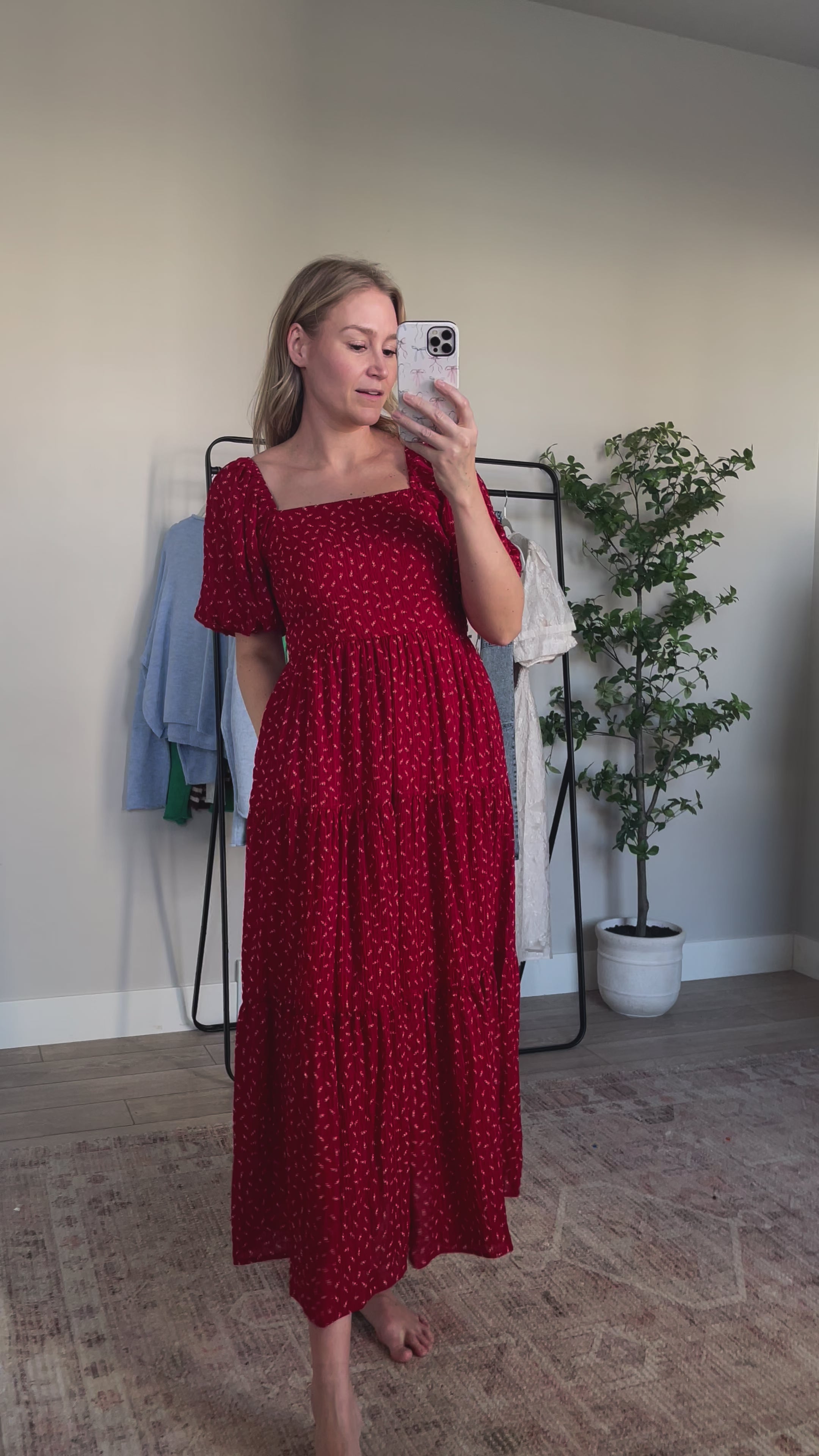 Our sizing suggestion: TTS. No stretch in bust. Bump friendly