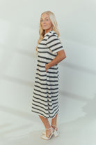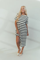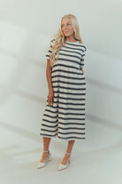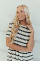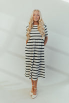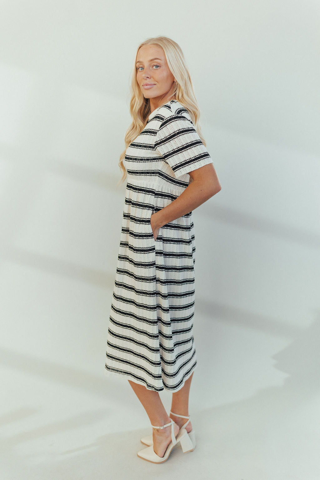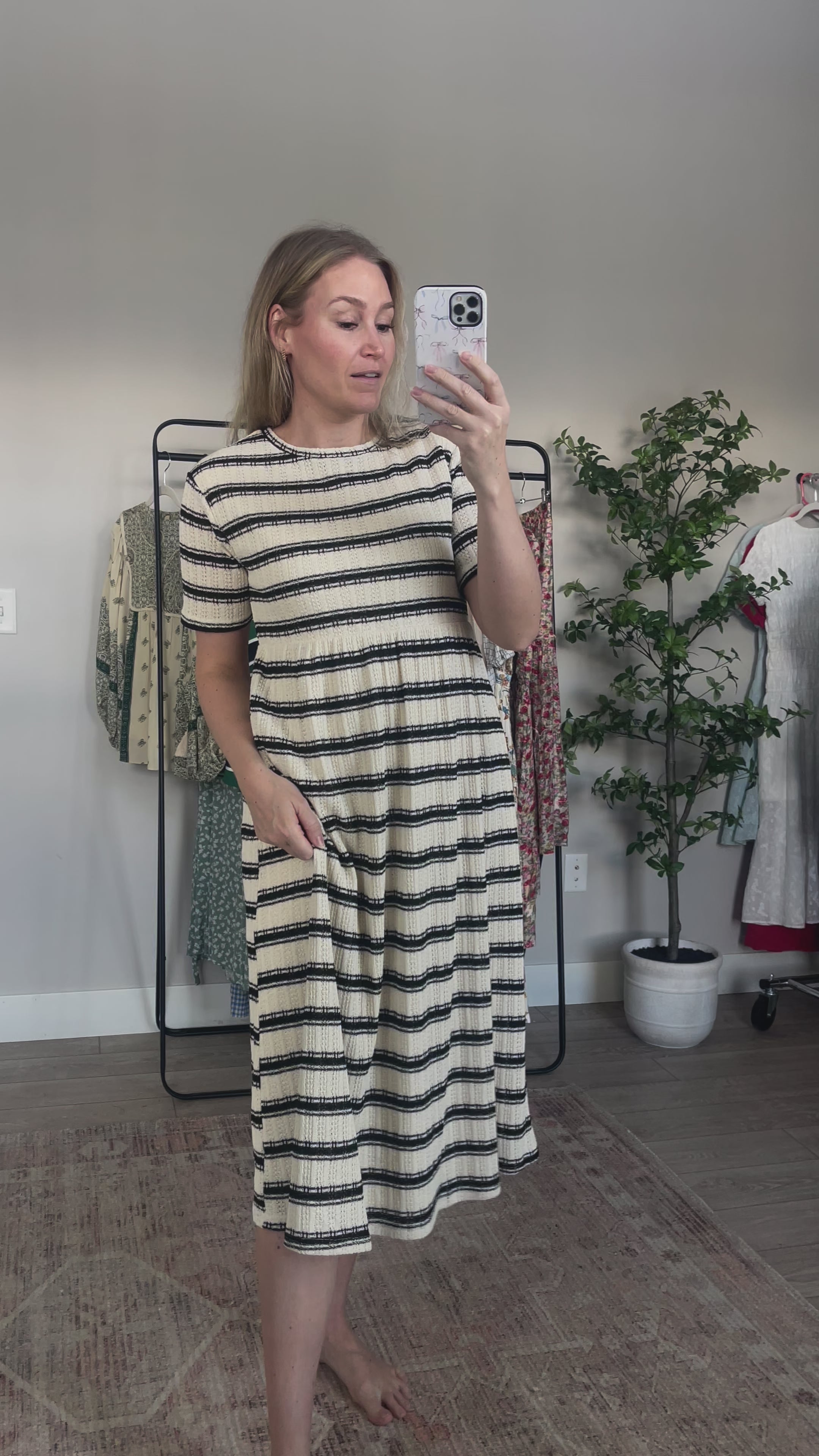 Our sizing suggestion: TTS, fitted but stretchy. Size up if more room is needed in bust. Bump friendly