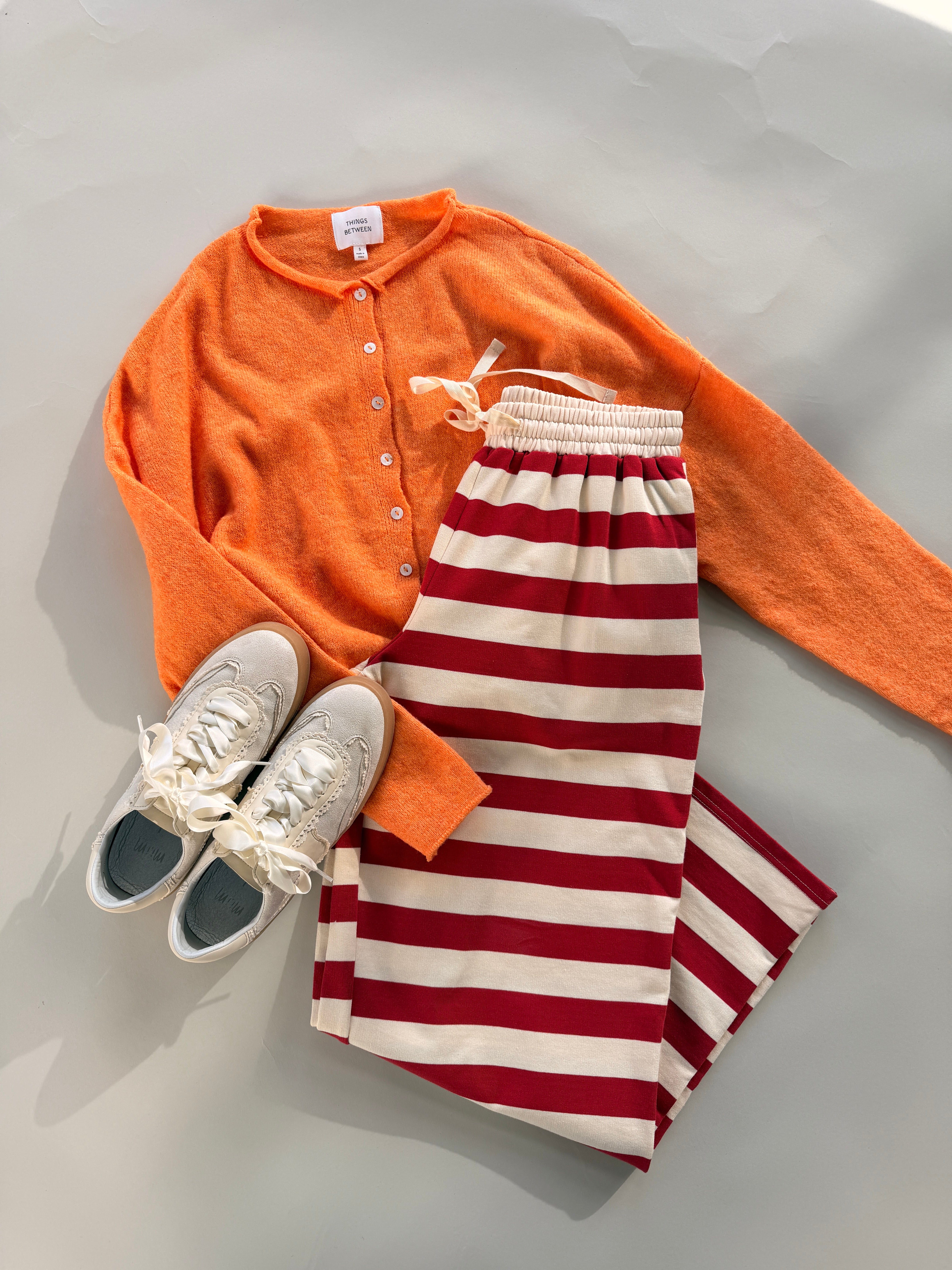 Main details: Red & cream stripe pants with elastic waistband