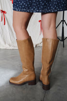 Our sizing suggestion: TTSMain details: Zipper closure. Low stacked 2" heel. Banana boot dupe!