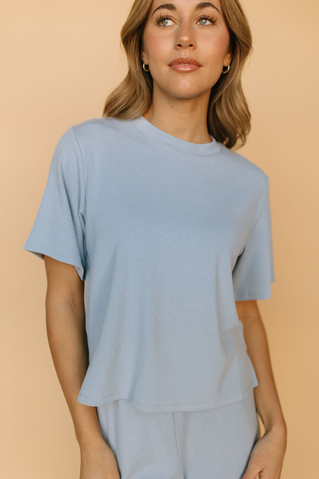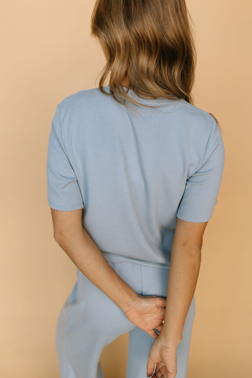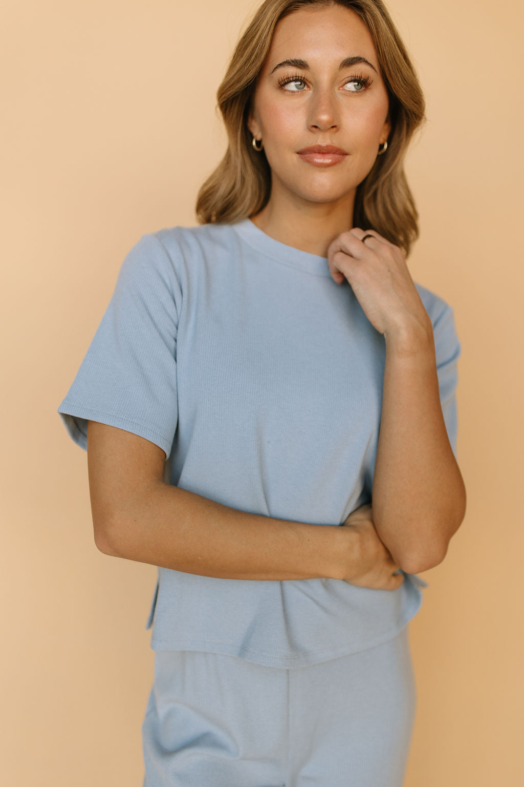 Elmsley Ribbed Fleece Top in Dusty Blue