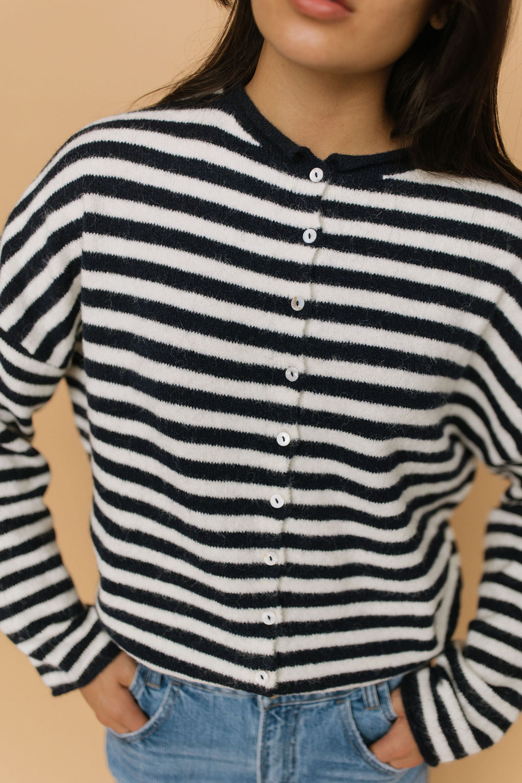 Piper Cardigan in Dark Navy Stripe