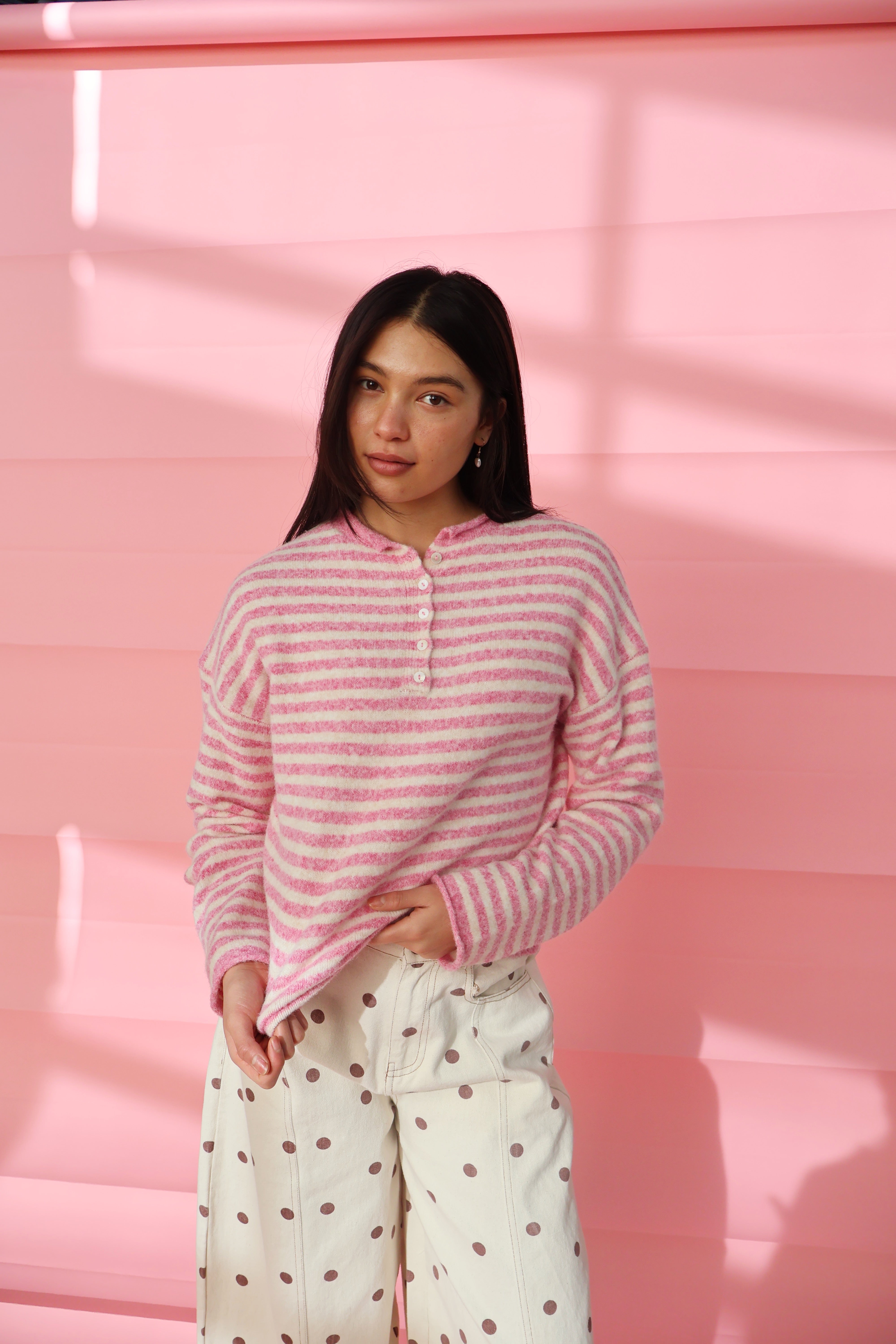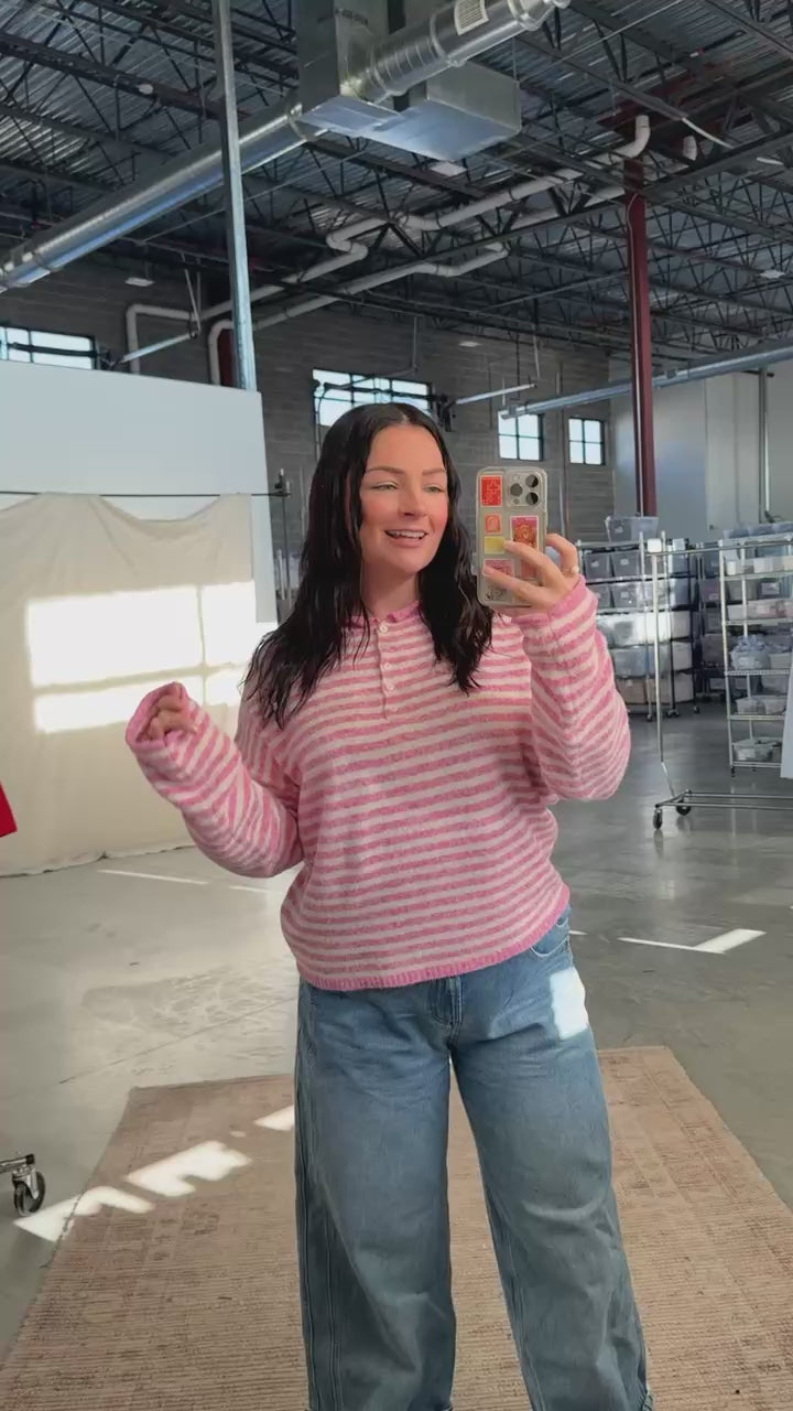 Piper Henley Pullover in Bubblegum Stripes