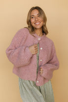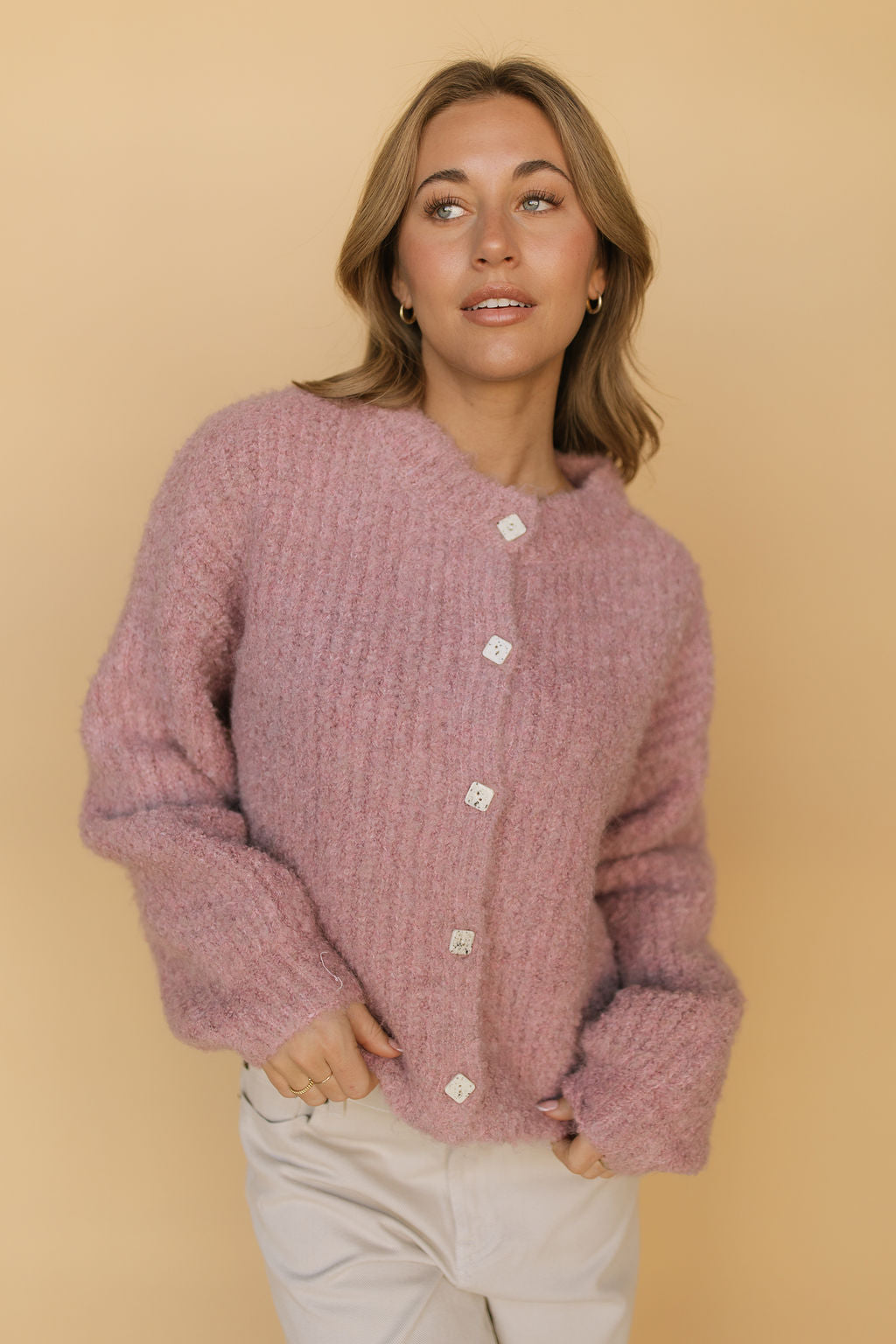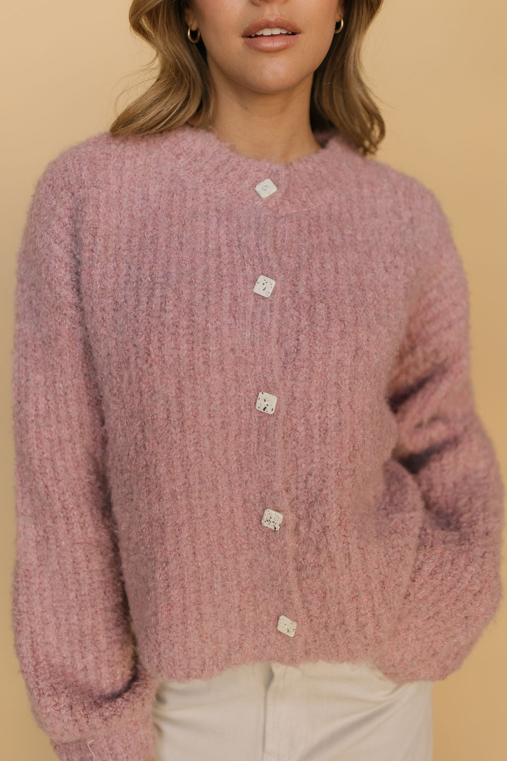 Main details: Ultra soft fuzzy cardigan with contrast square buttons