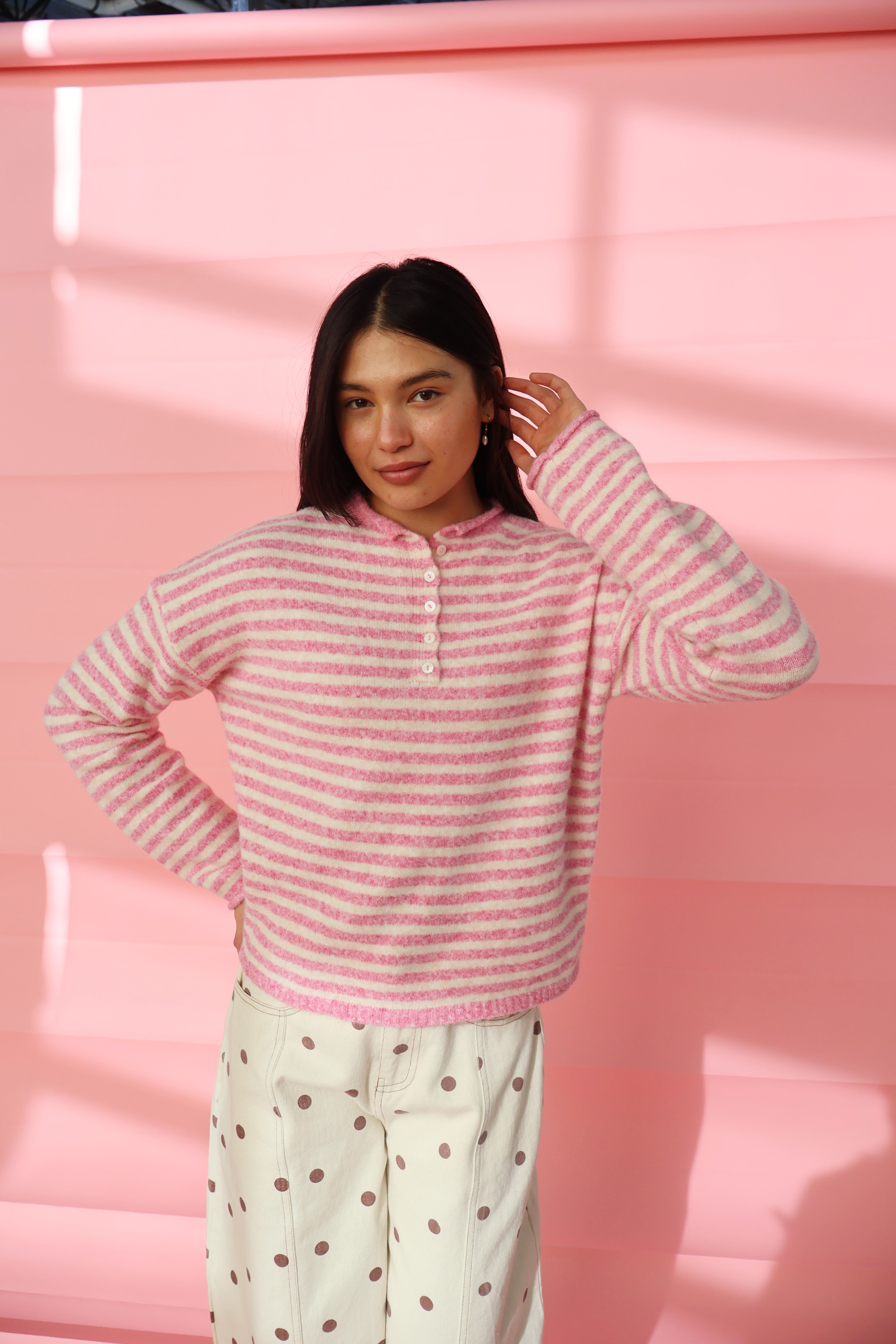 Piper Henley Pullover in Bubblegum Stripes
