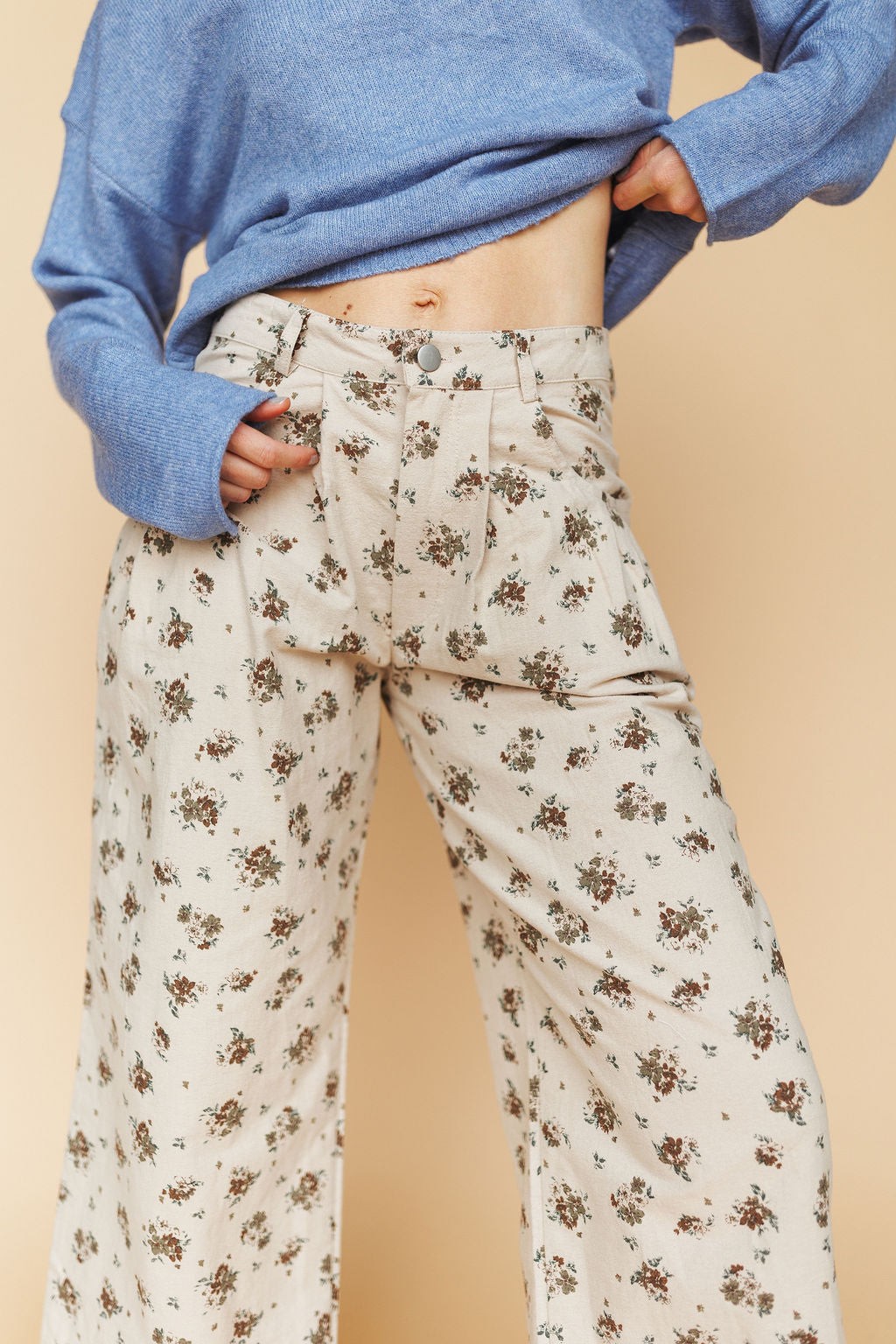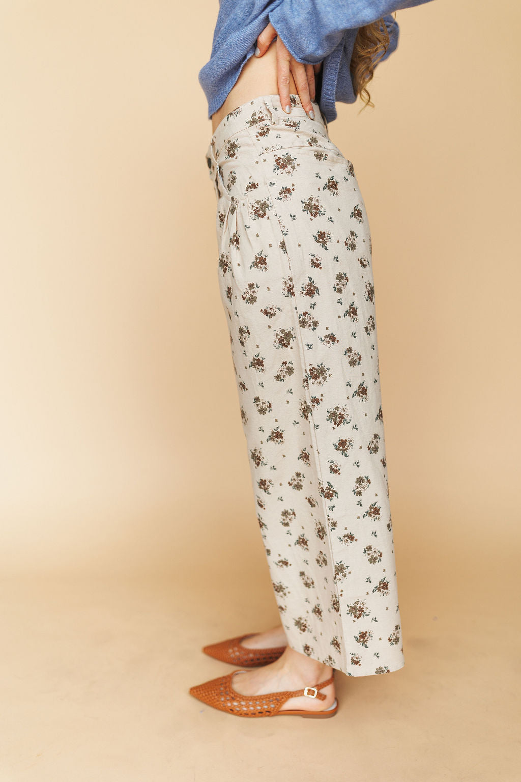 Charlie Floral Pants in Tan