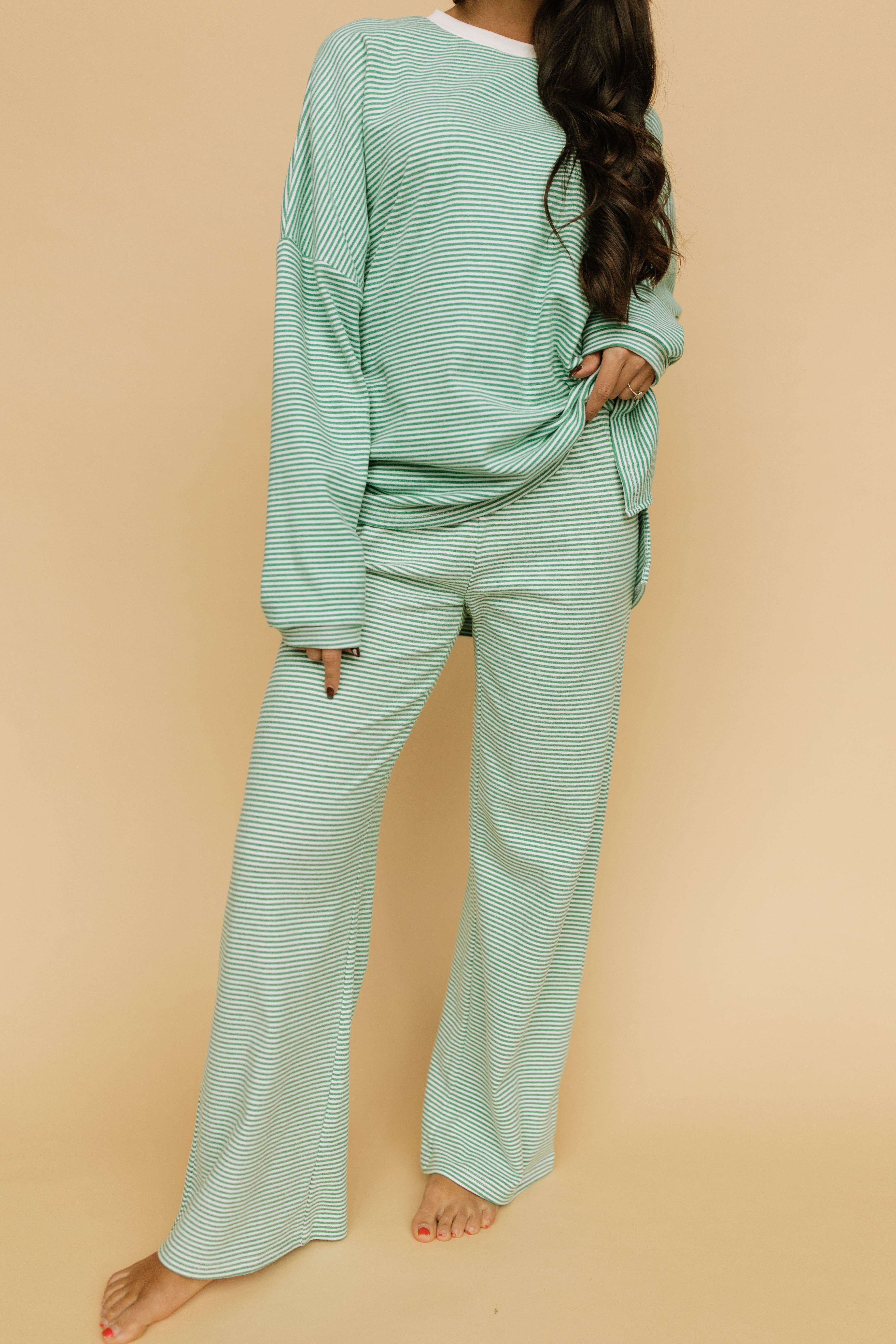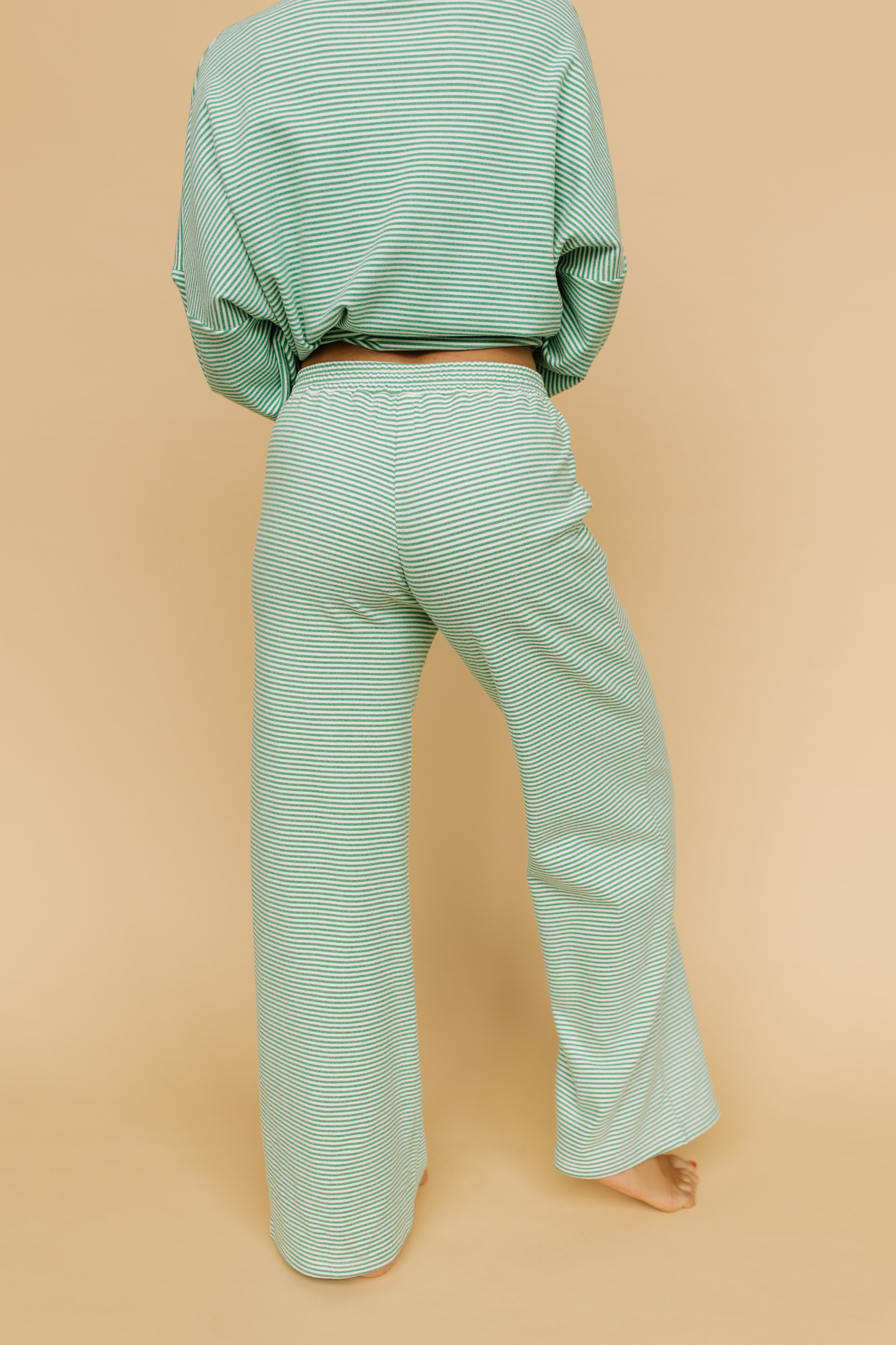 Details: Soft stretchy stripe fleece pants with elastic waistband