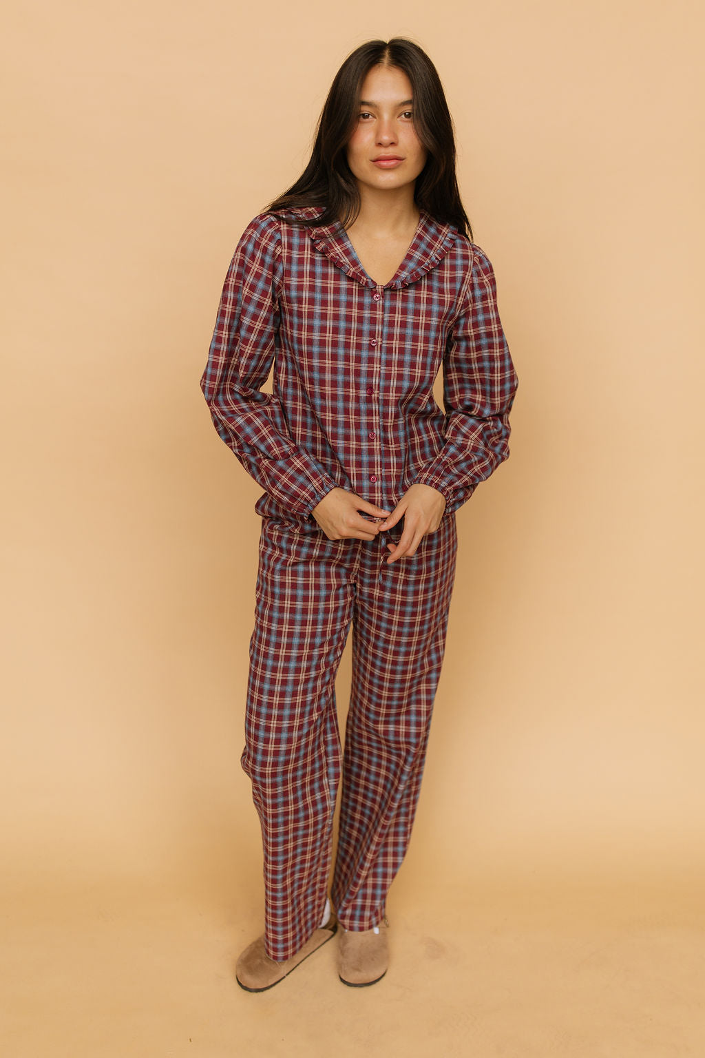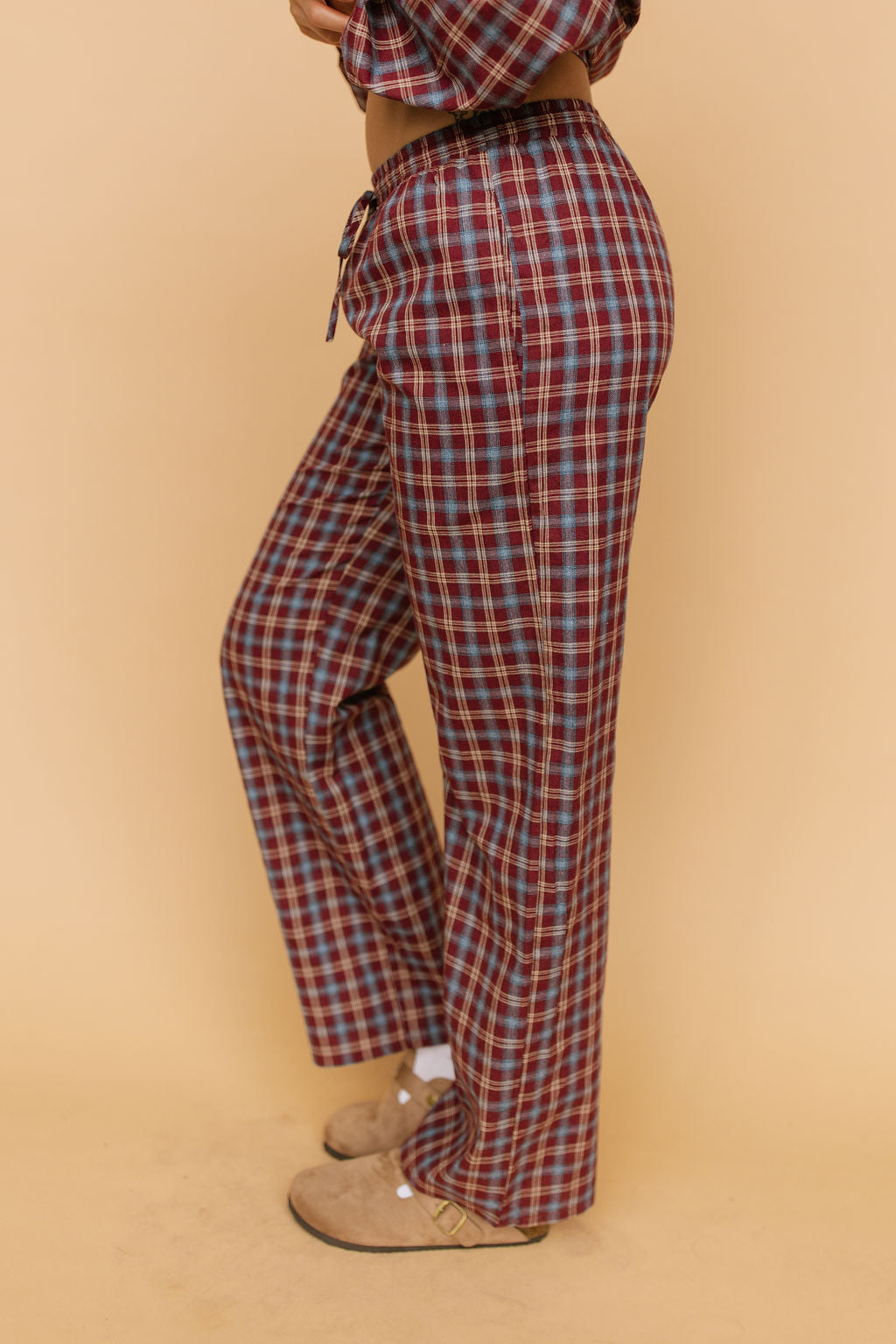 Rorie Checkered Pants in Burgundy