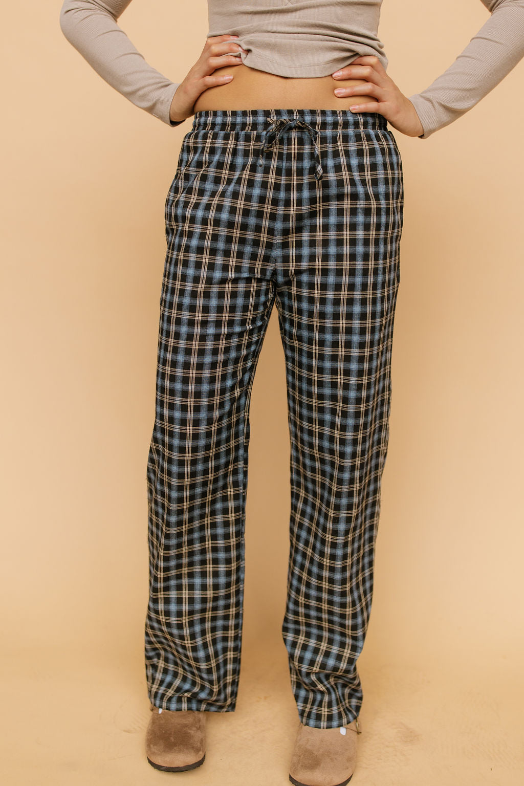 Details: Navy plaid cotton pants with elastic band and functional tie. Side pockets. Comfy like lounge pants but will be so fun to dress up with cardigans & sweaters!