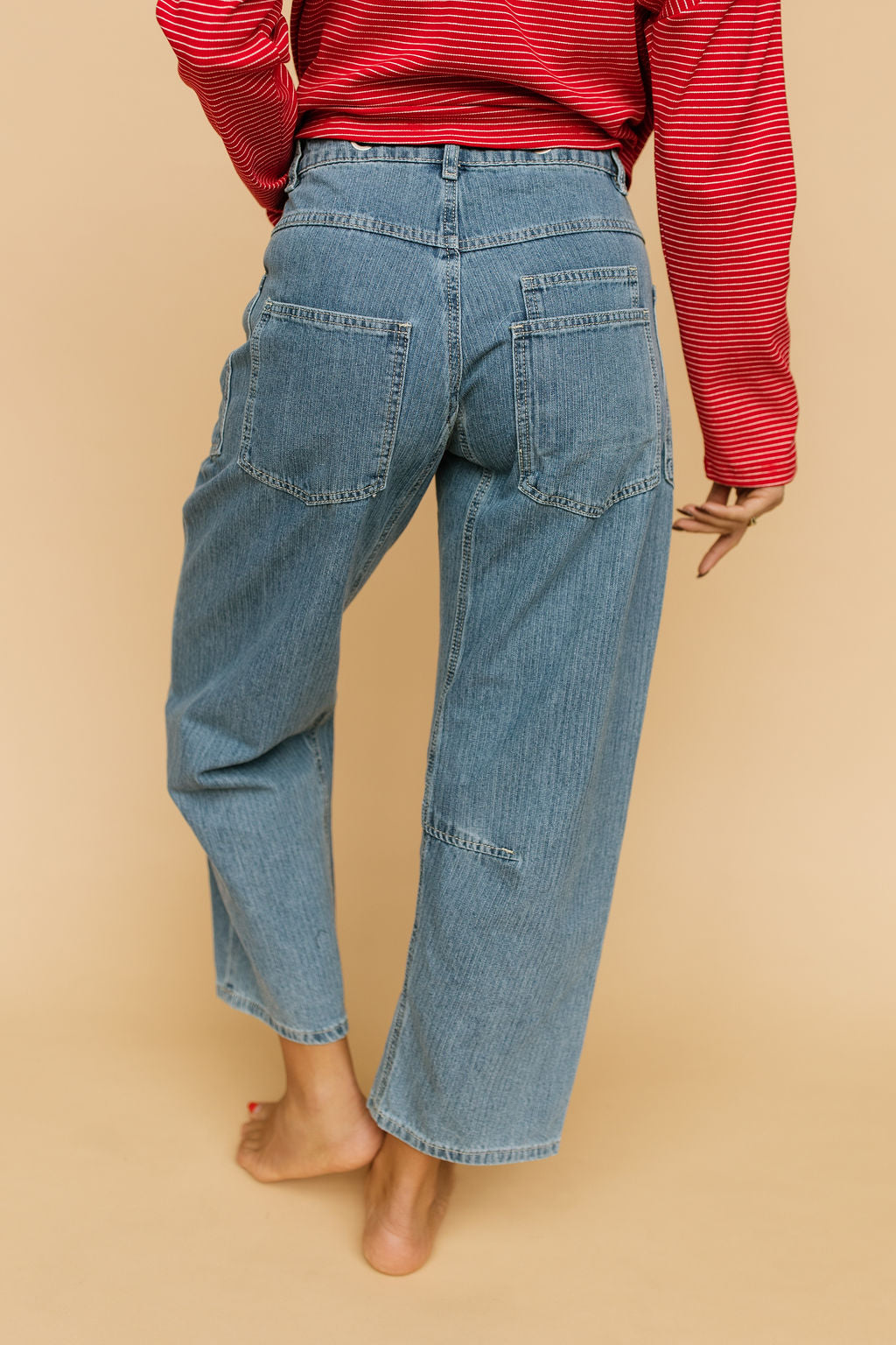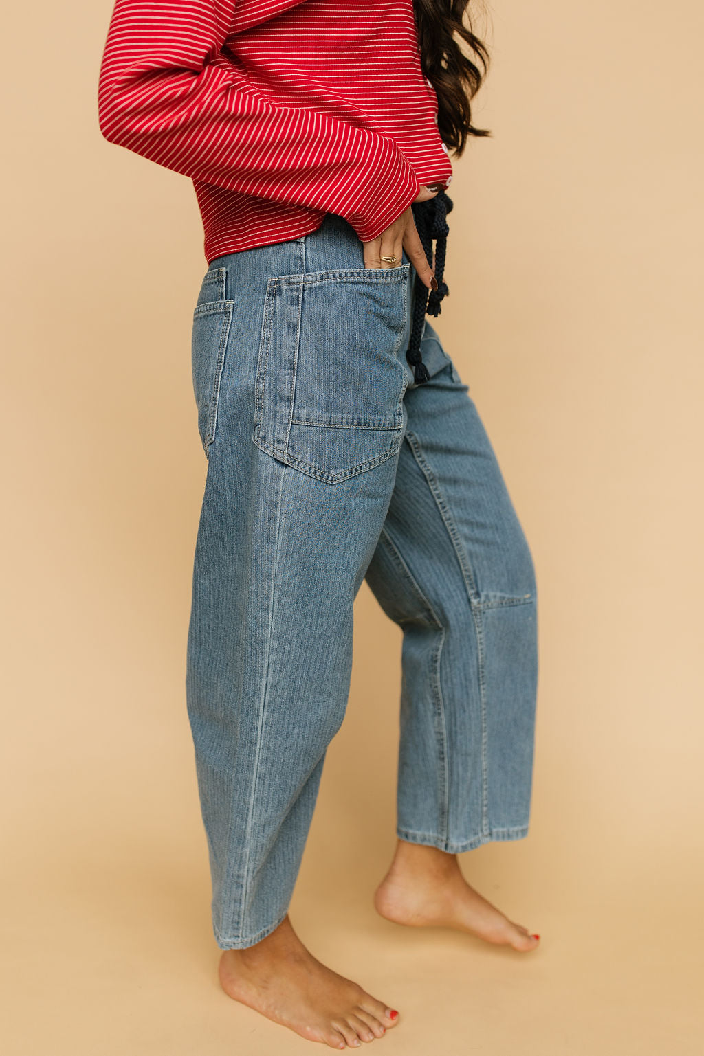 Free People Good Luck Mid-Rise Barrel Jeans in Ultra Light Beam