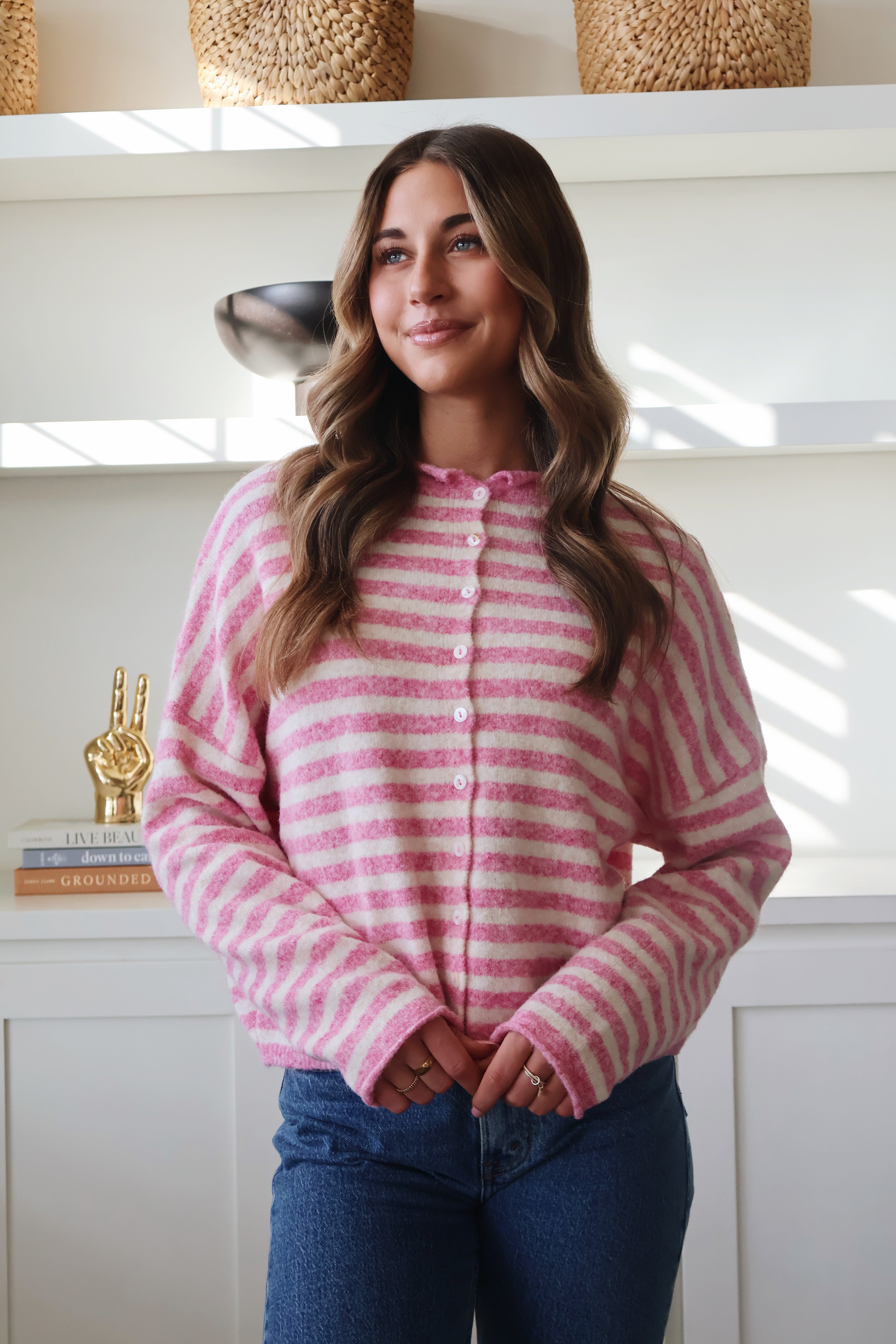 Piper Cardigan in Bubblegum Pinstripe