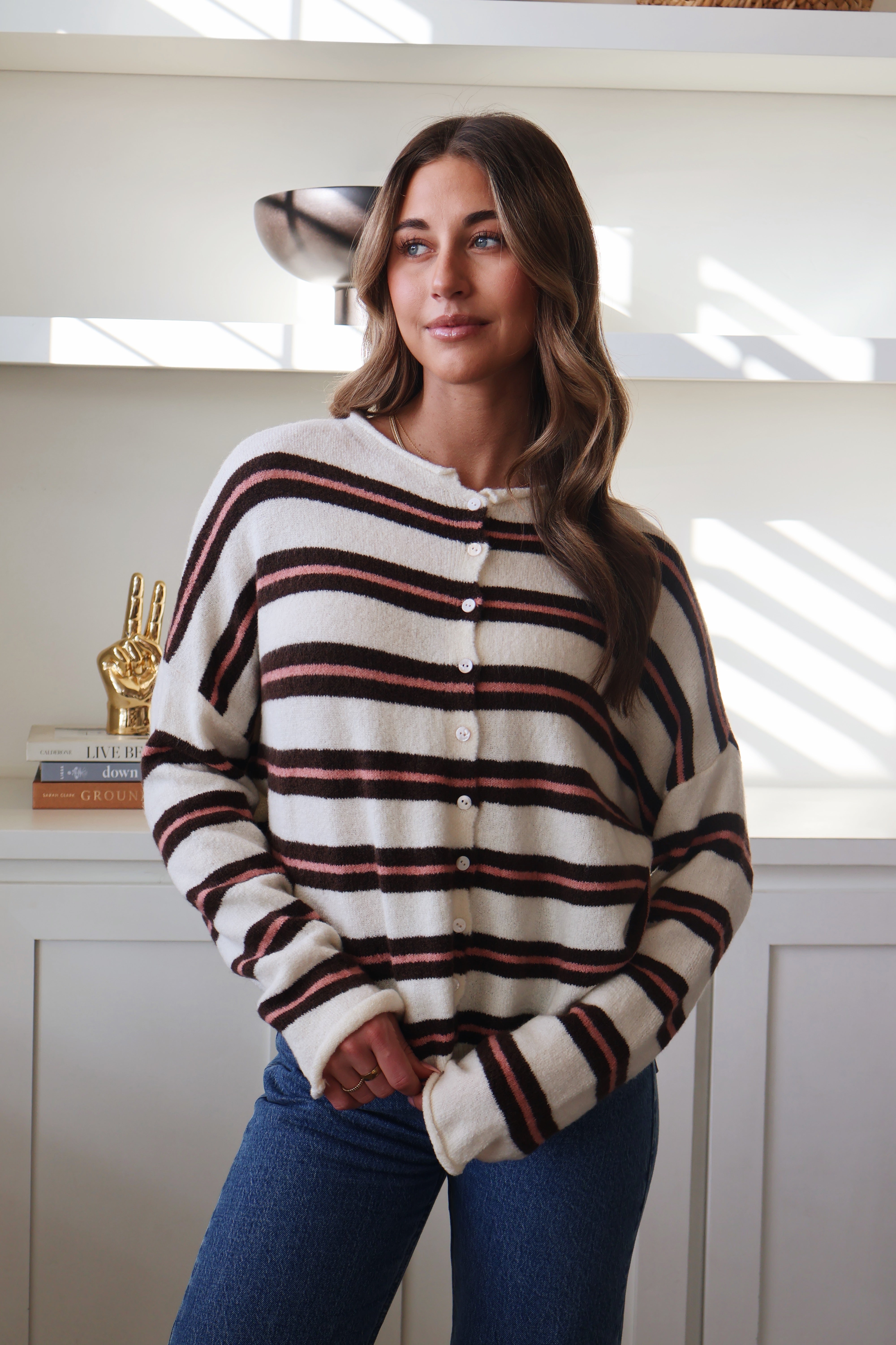 Piper Cardigan in Honey Multi Stripe