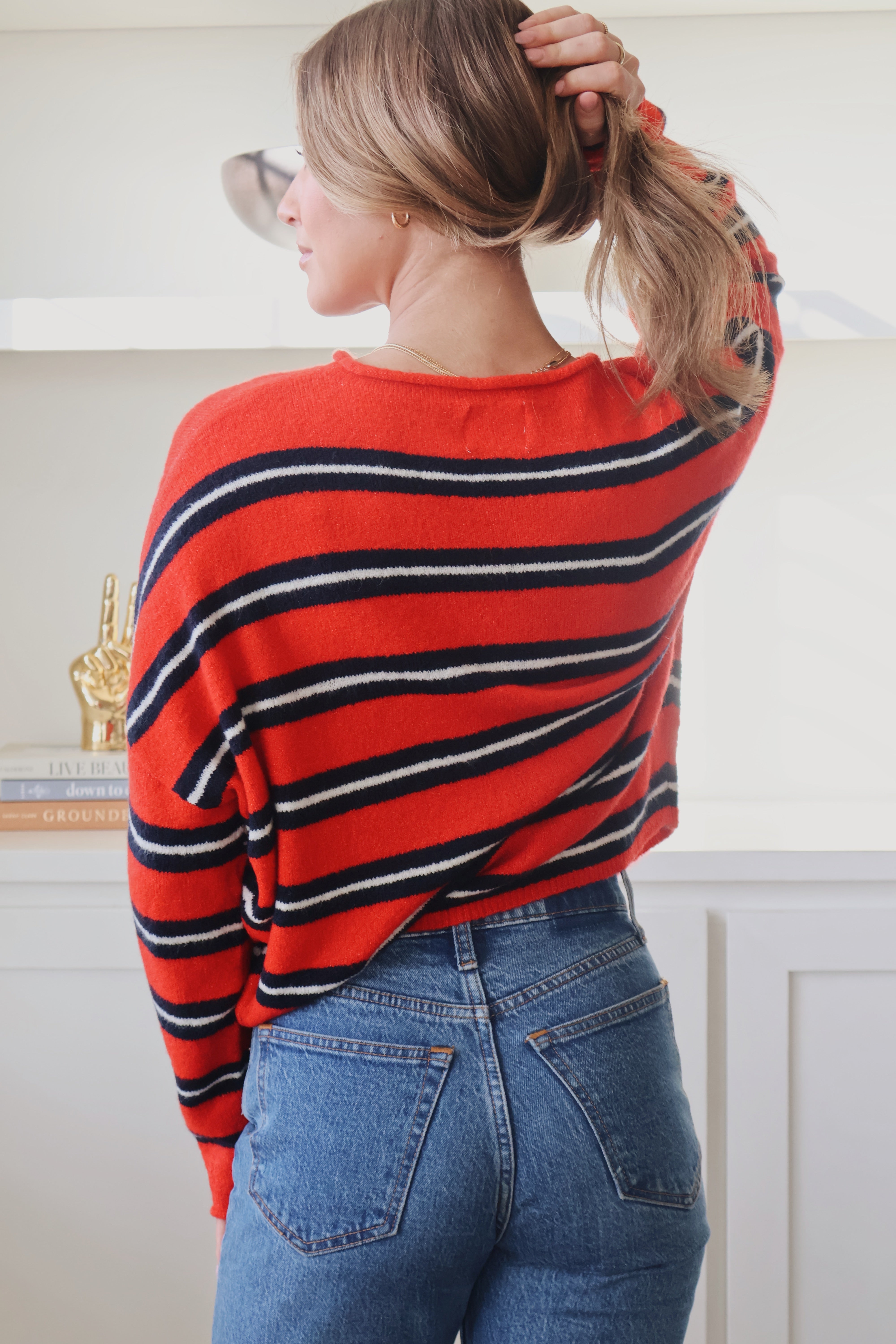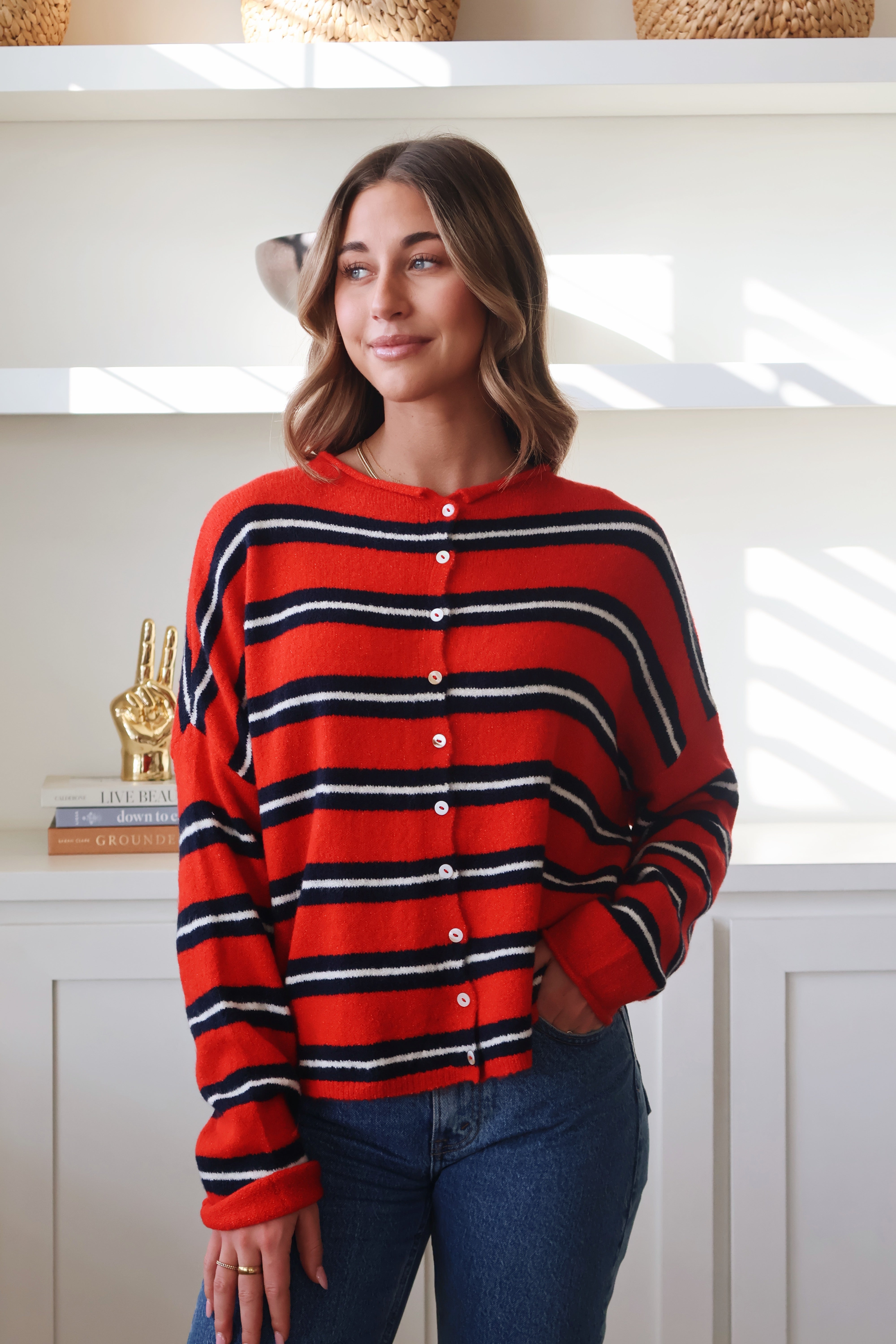 Piper Cardigan in Tomato Red Multi Stripe