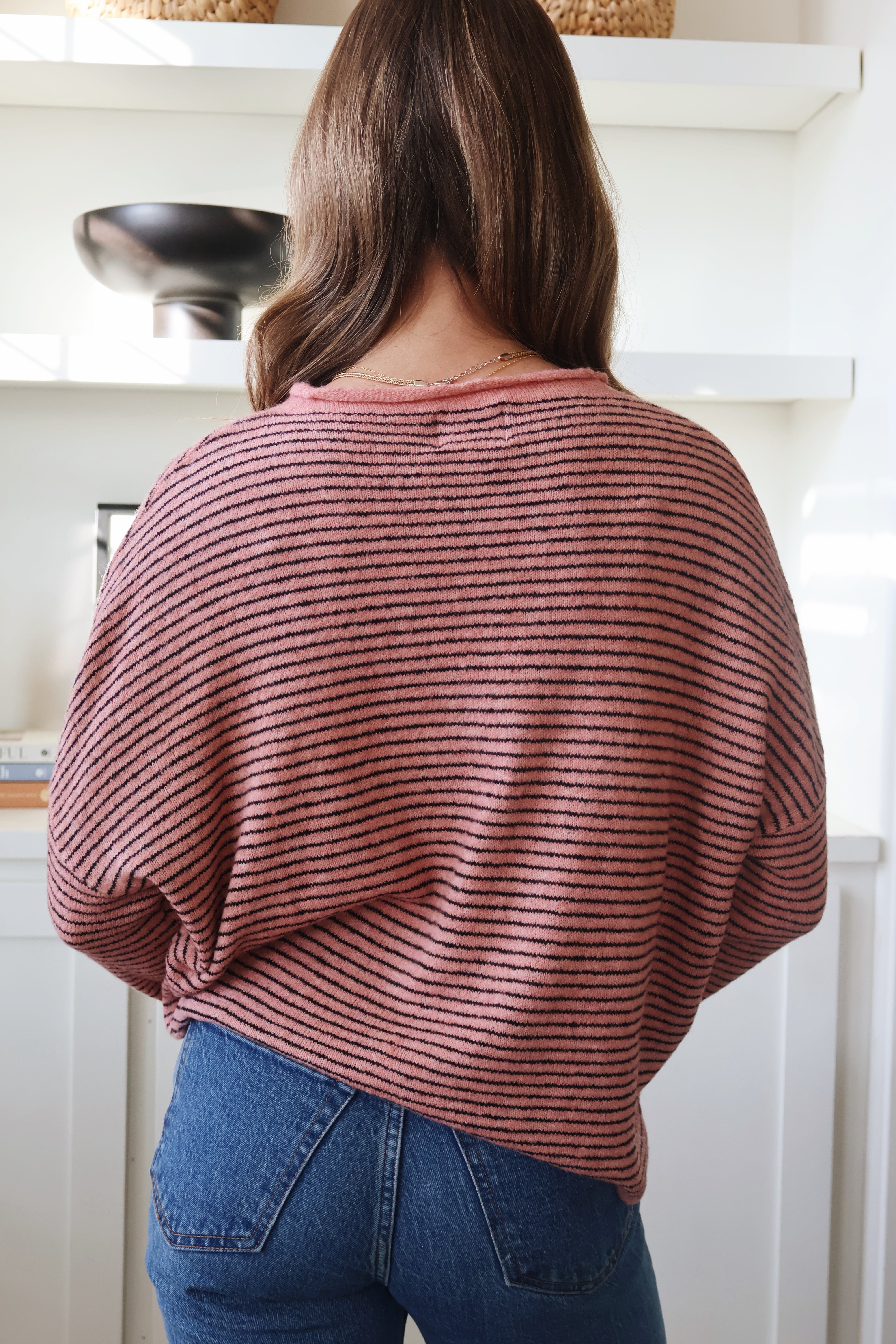 Piper Cardigan in Rose Pinstripe