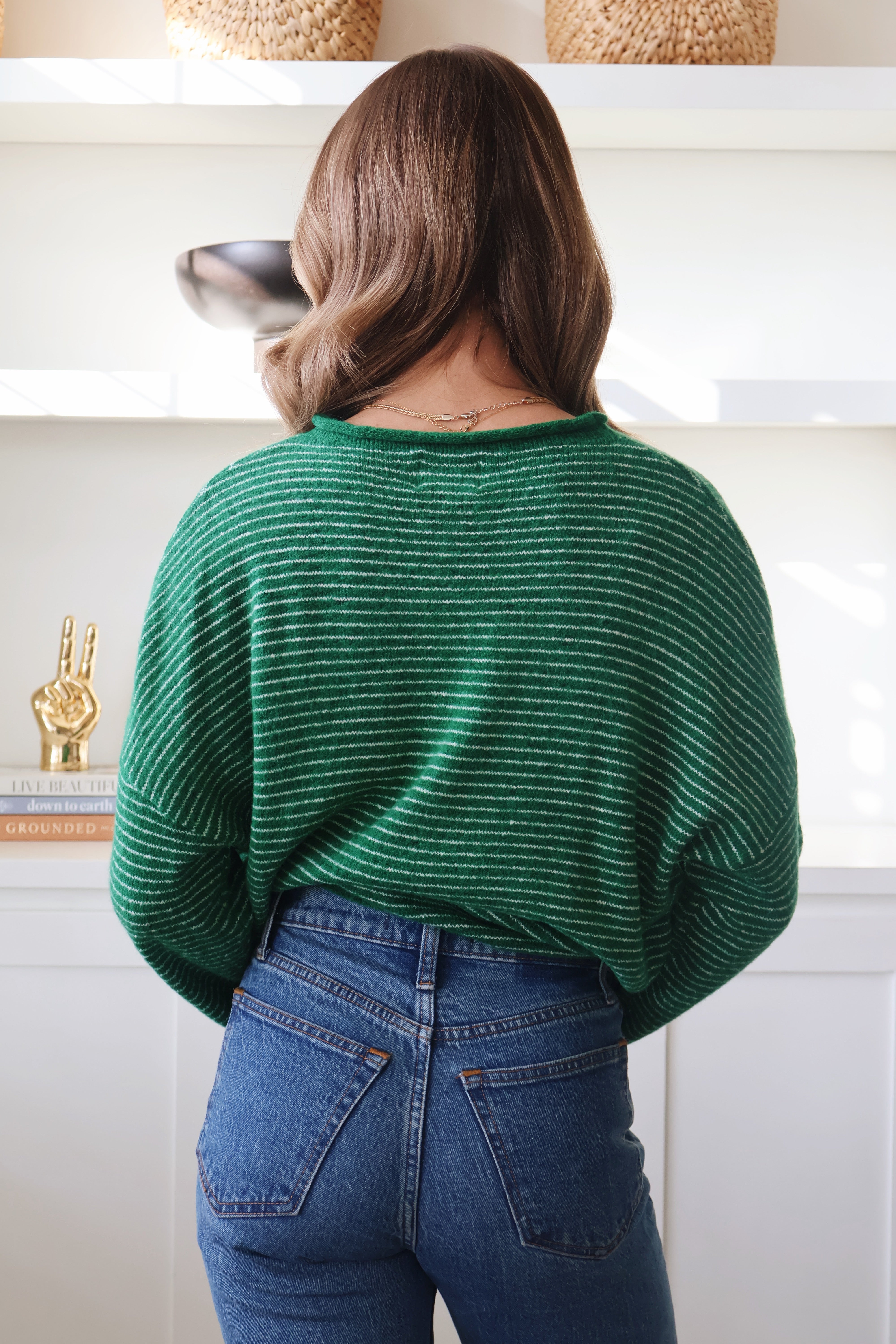 Piper Cardigan in Kelly Green Pinstripe