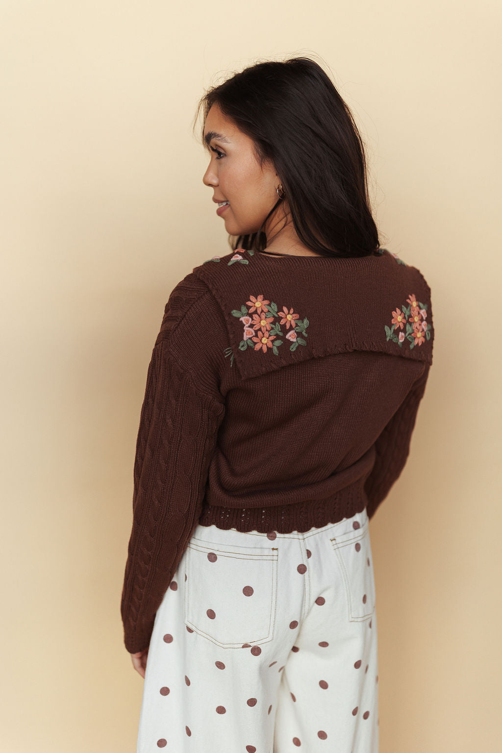 Heather Embroidered Cardigan in Mocha