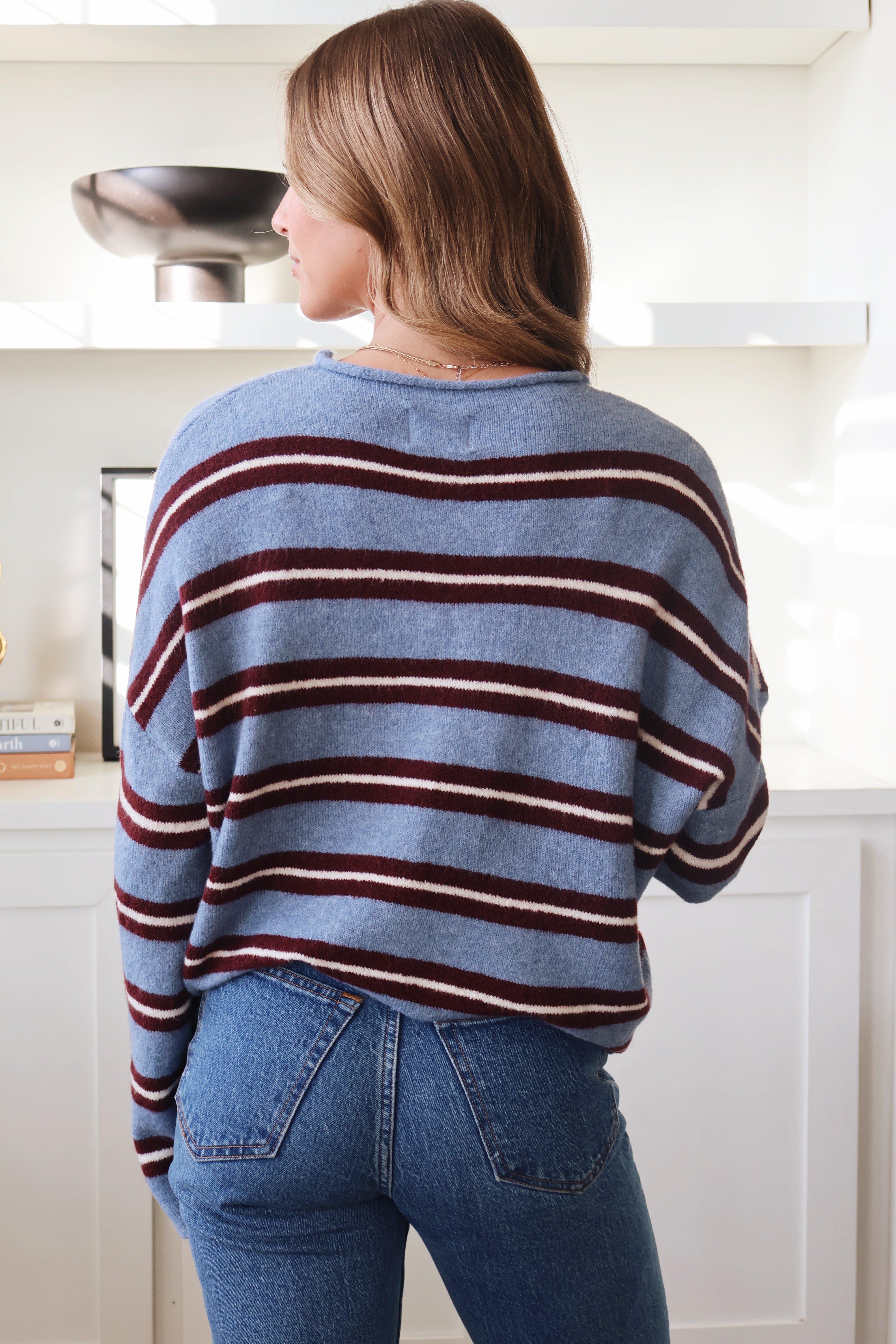 Piper Cardigan Dusty Blue Multi Stripe