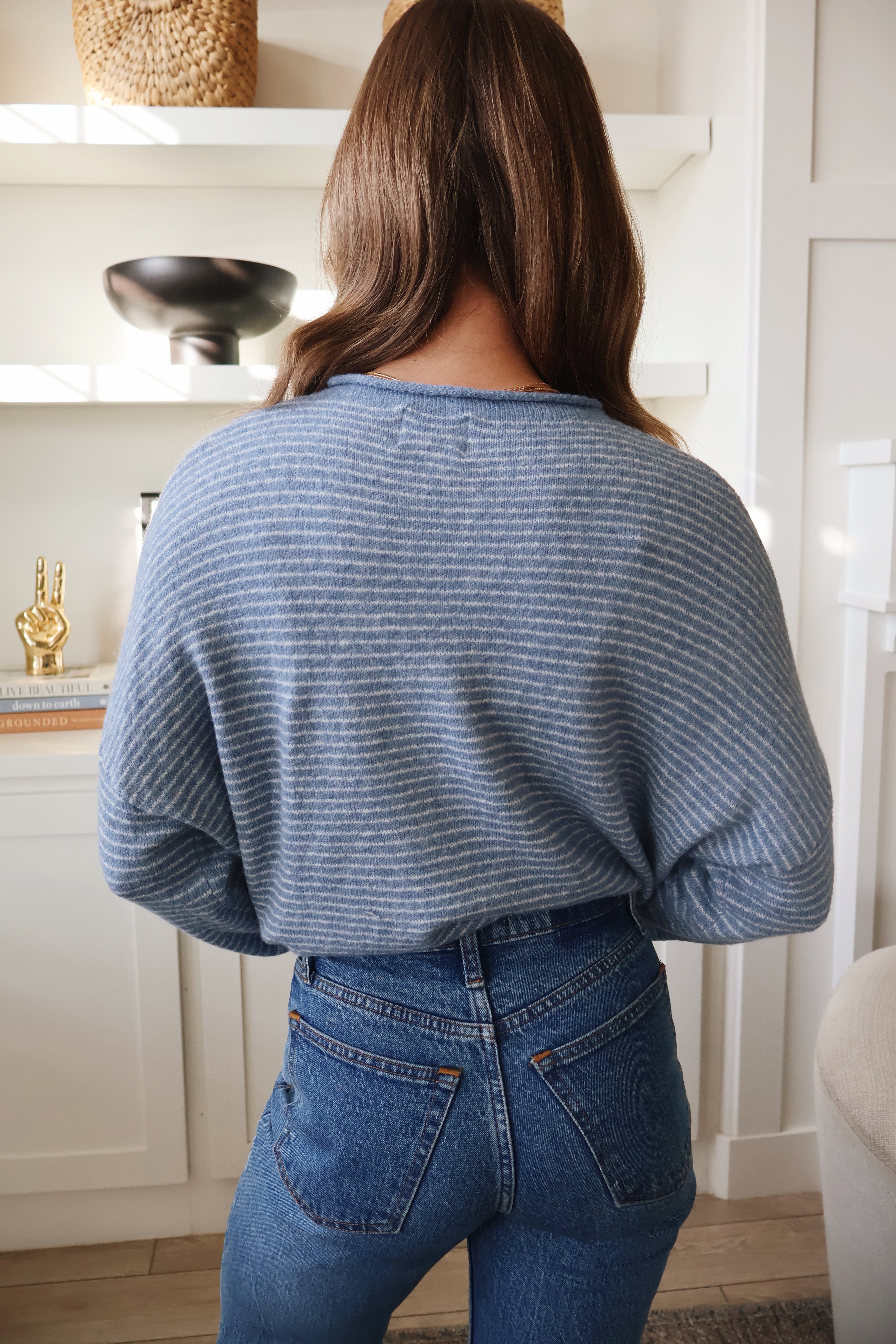 Piper Cardigan in Dusty Blue Pinstripe