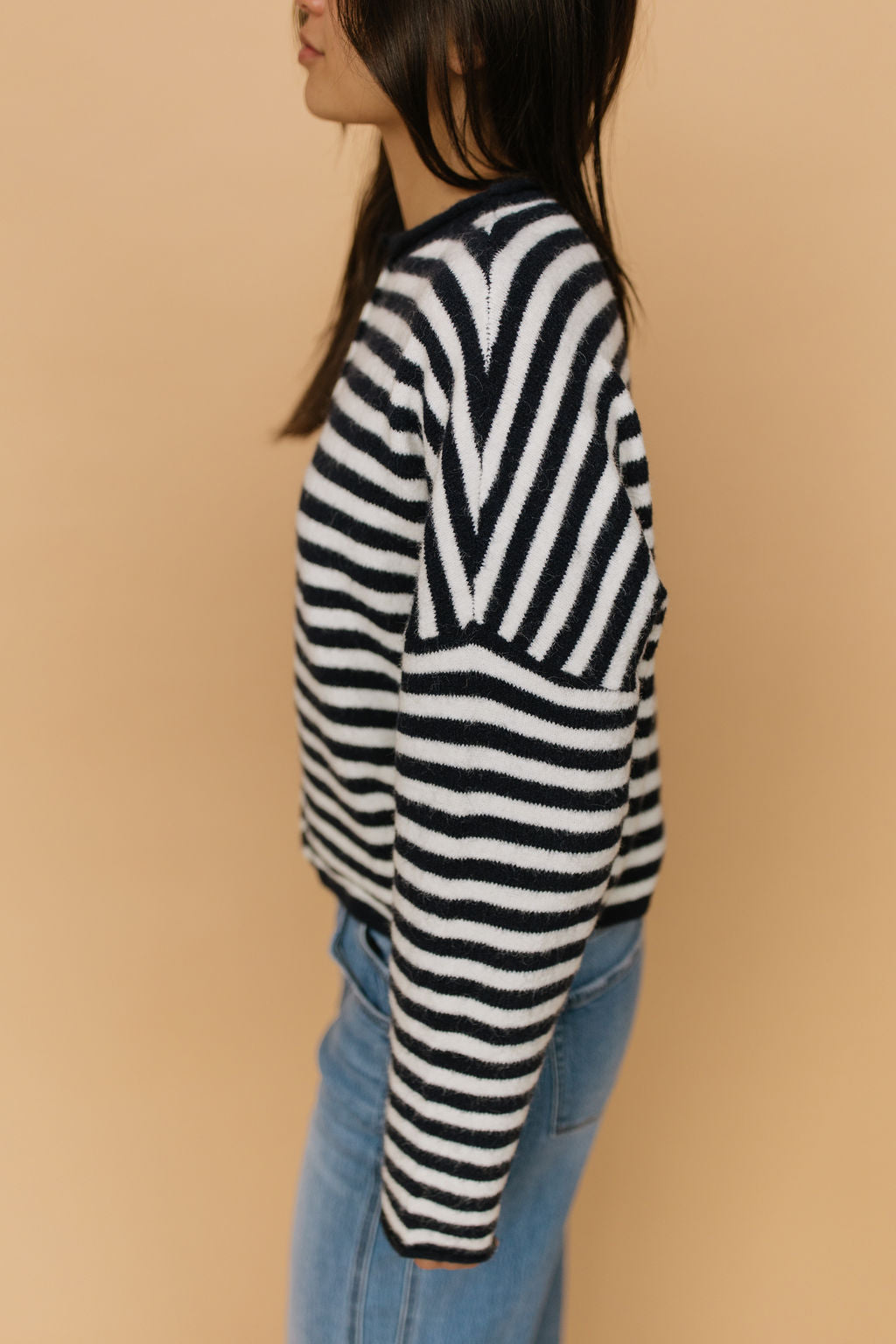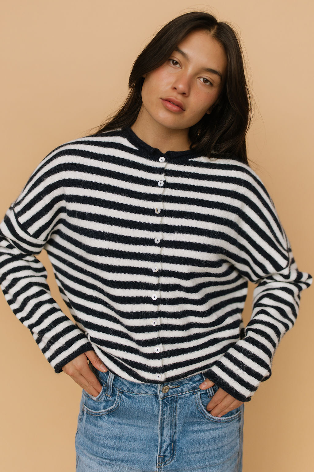 Piper Cardigan in Dark Navy Pinstripe