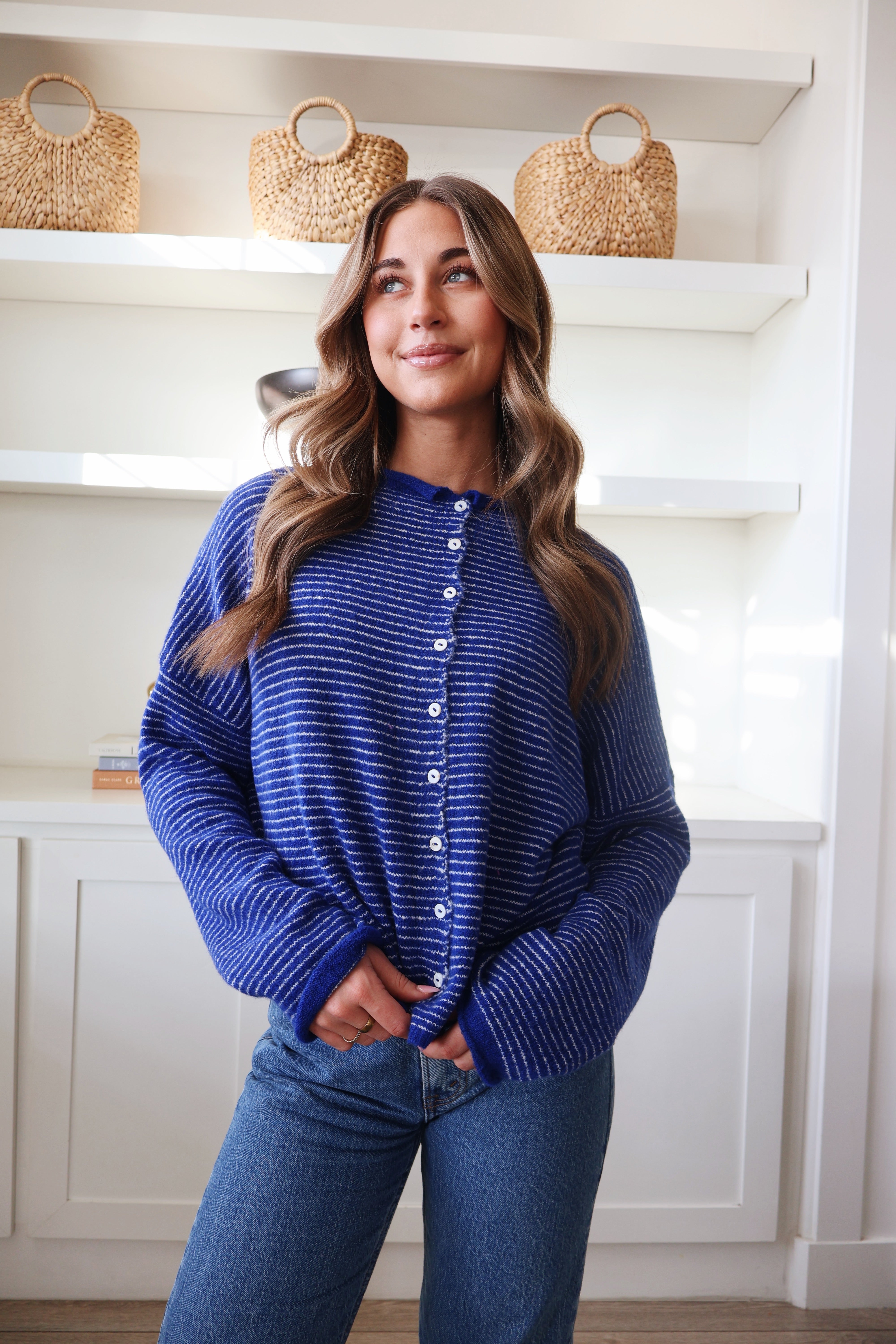 Piper Cardigan in Royal Blue Pinstripe