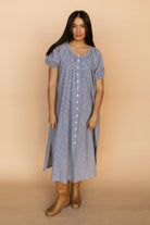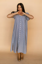 Eliza Gingham Midi in Navy