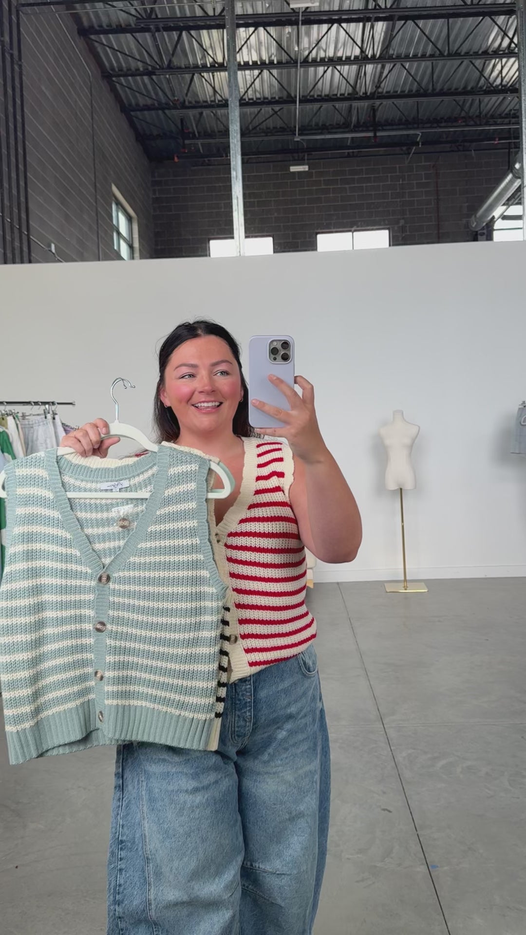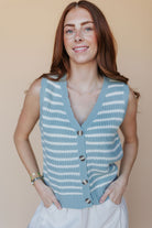 FINAL SALE - Beth Stripe Vest in Light Blue