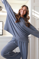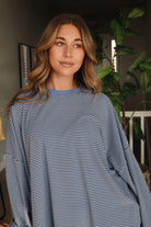 Porter Fleece Stripe Top in Blue