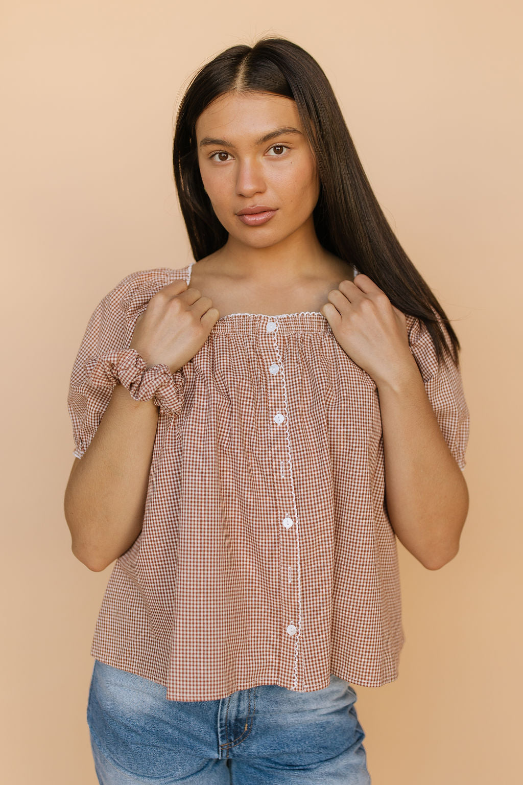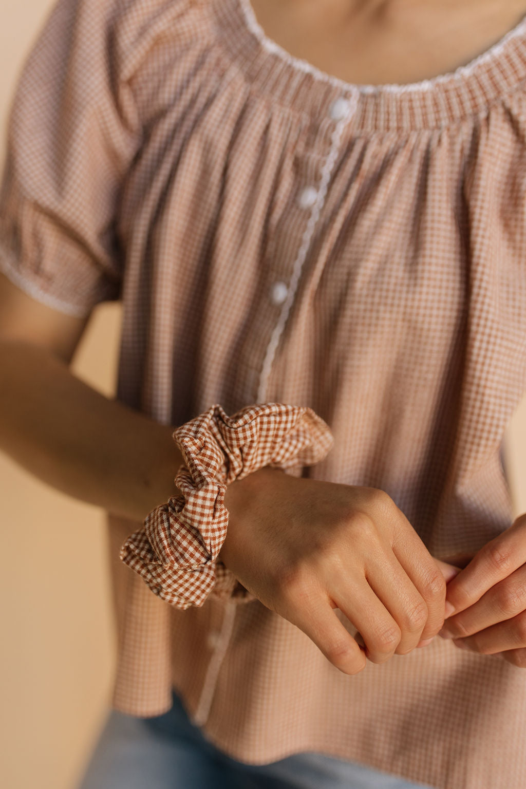 FINAL SALE - Gingham Scrunchie in Brown