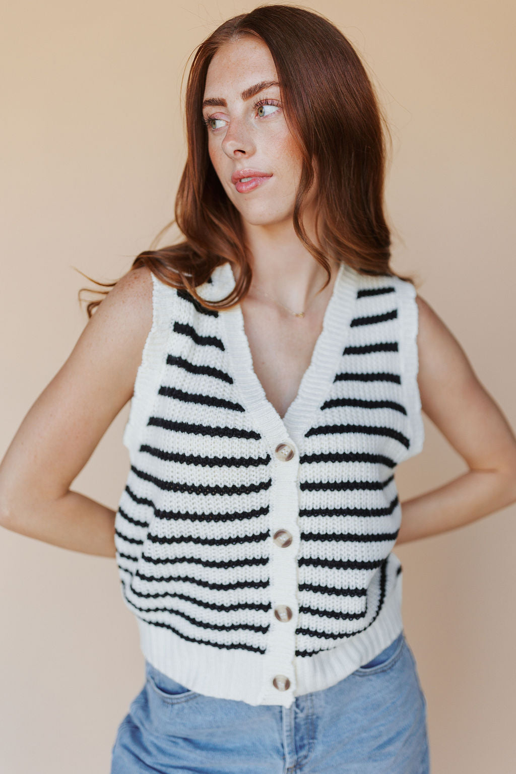 FINAL SALE - Beth Stripe Vest in Black