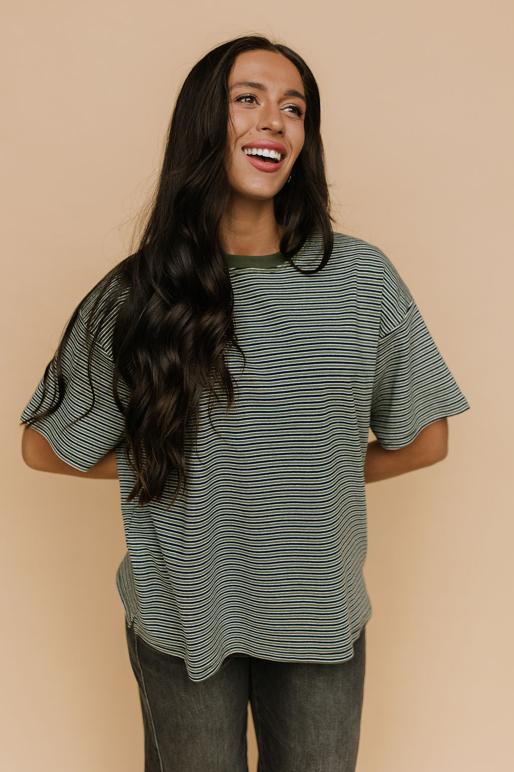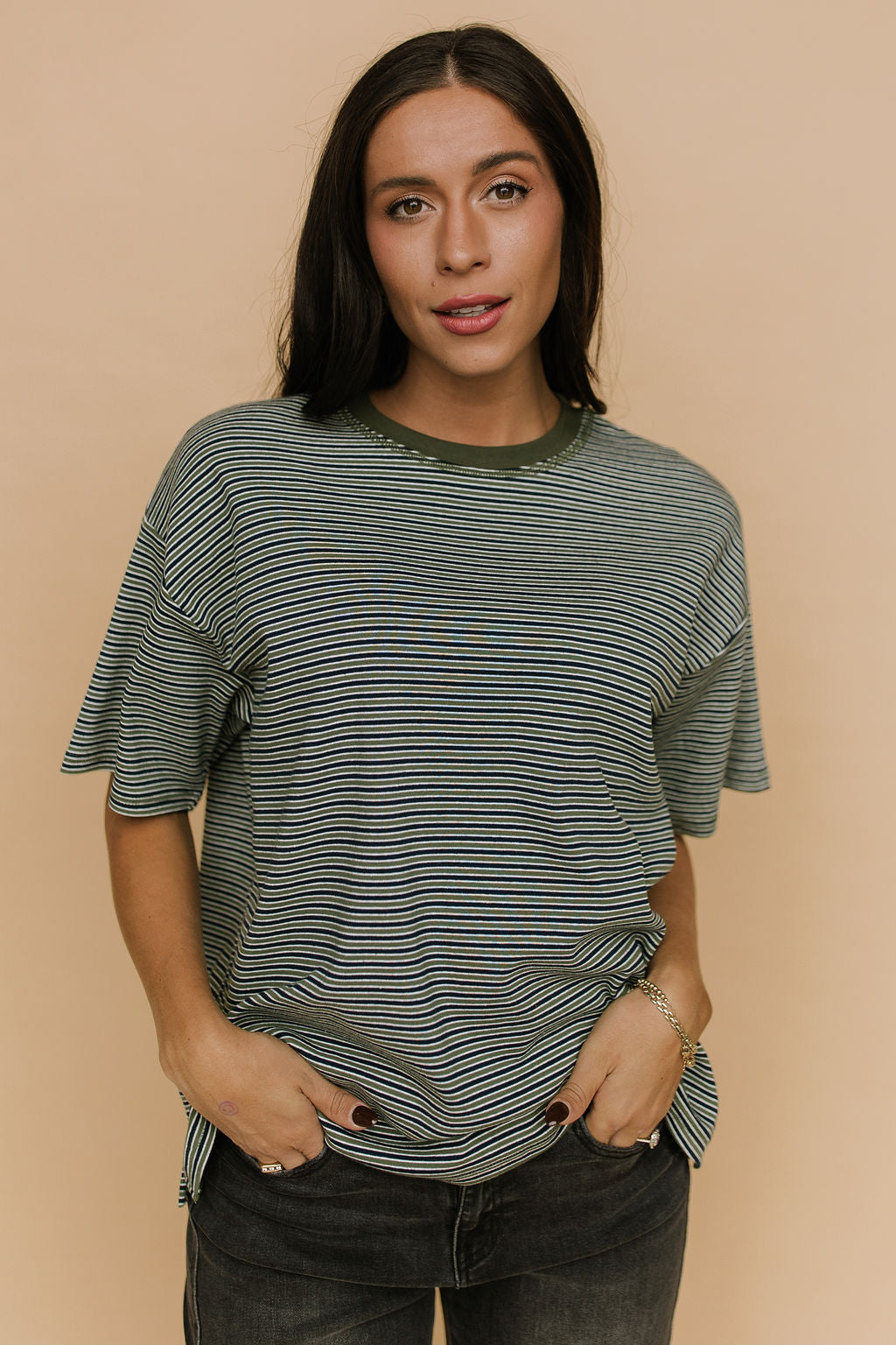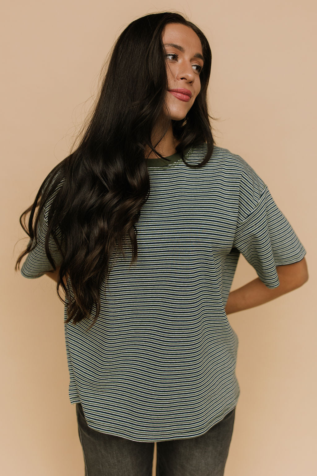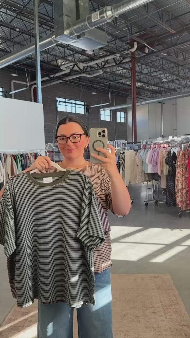 Carson Stripe Tee in Olive