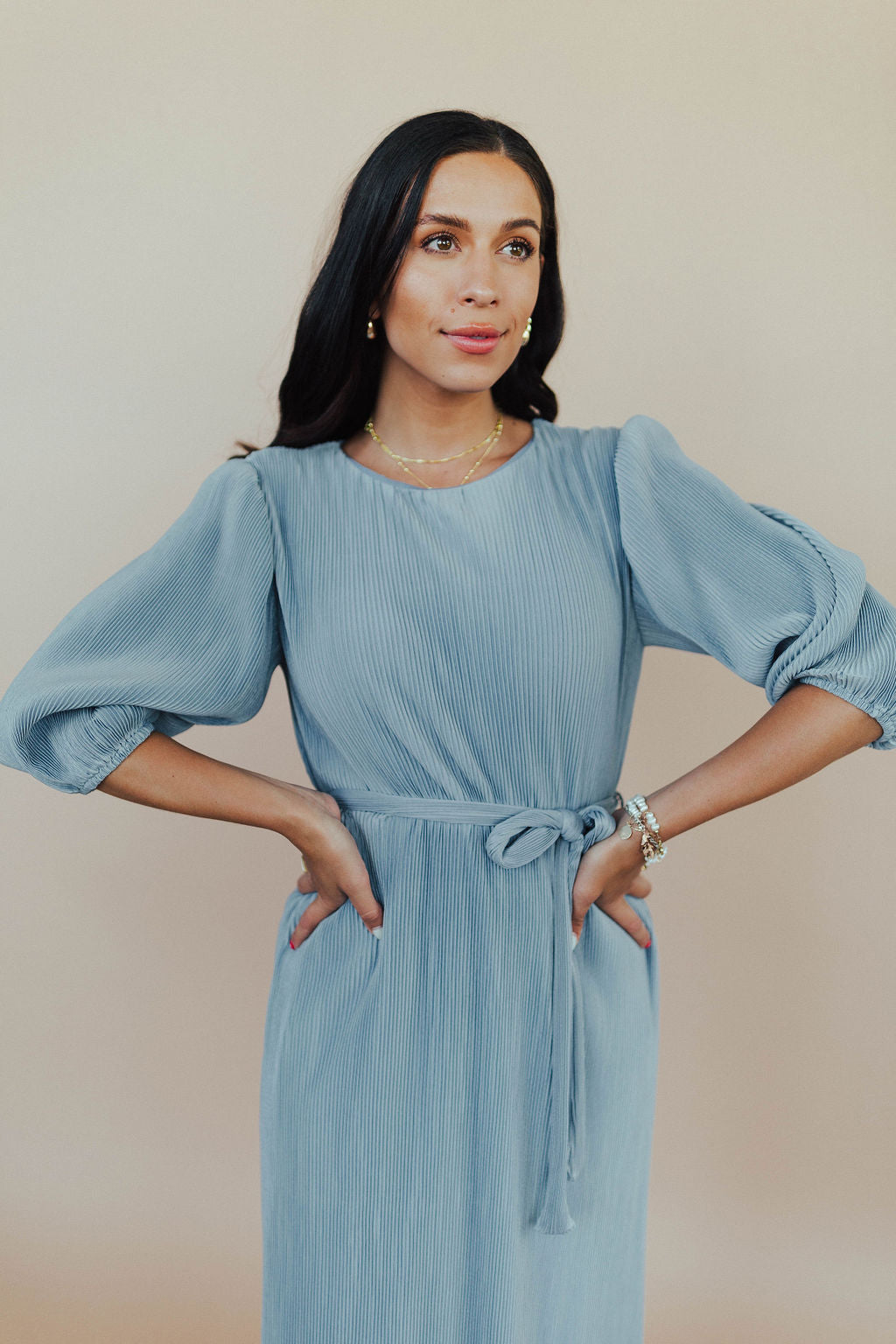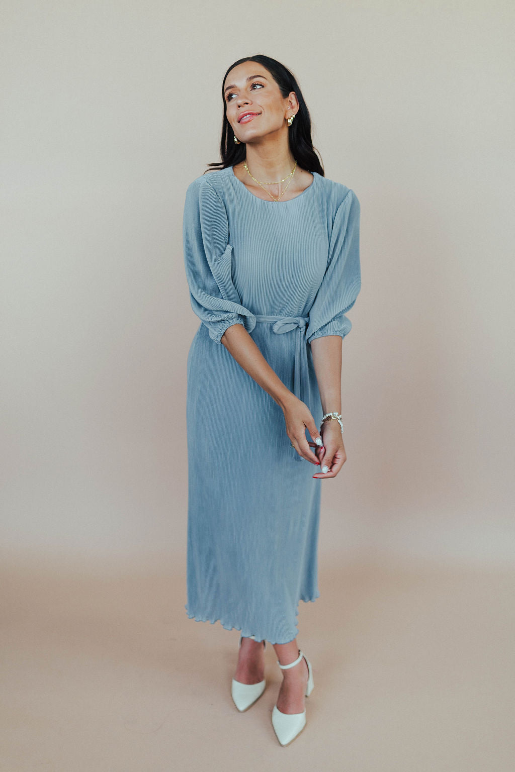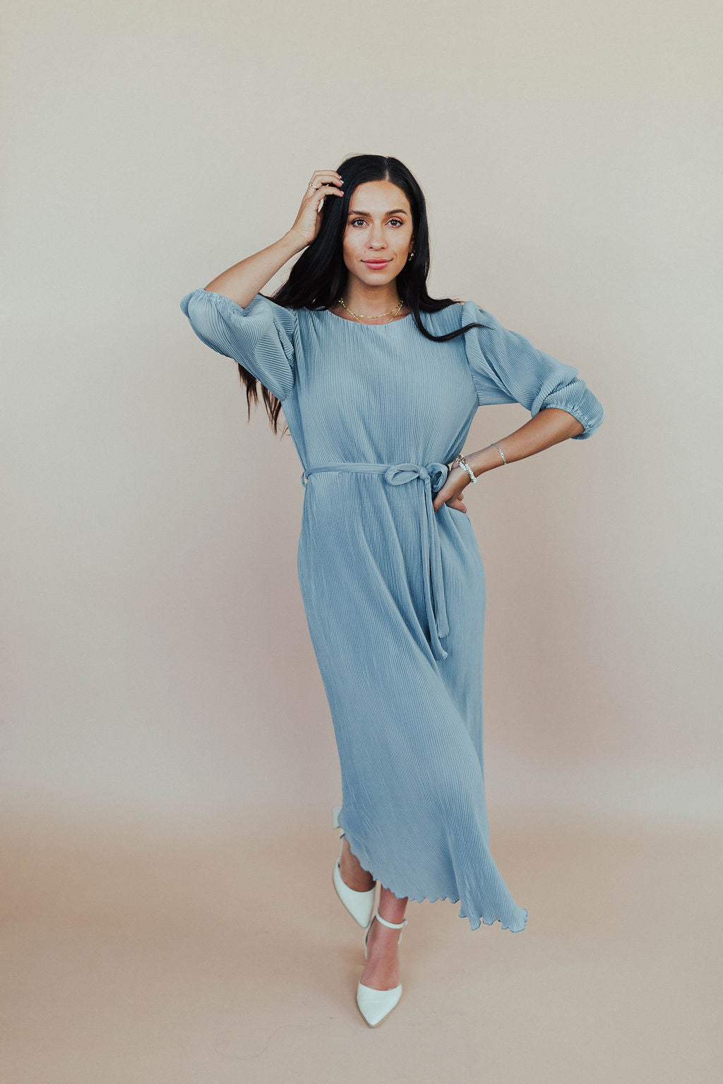 FINAL SALE - Nicole Pleated Midi in Dusty Blue