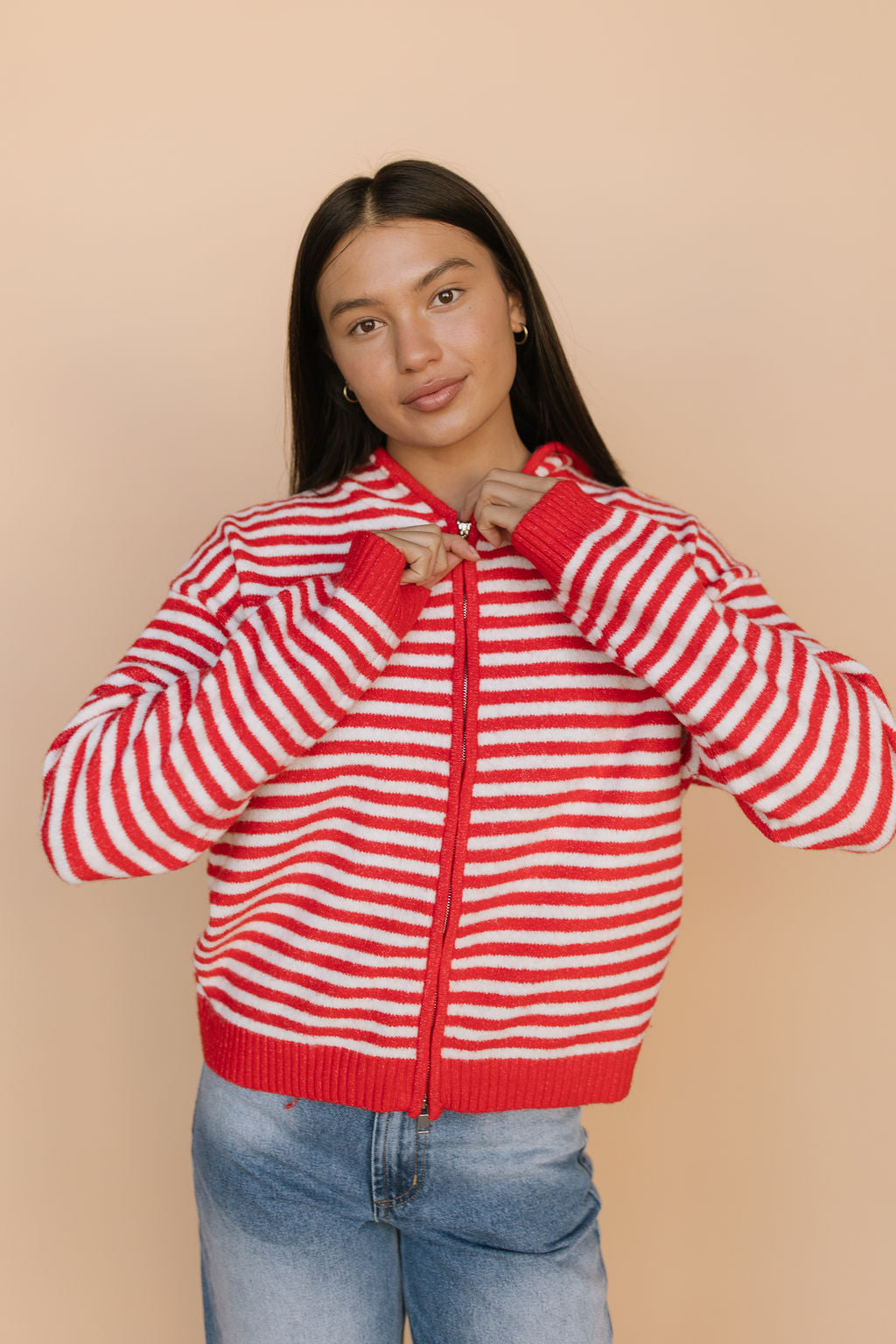 Myles Stripe Hooded Jacket in Red
