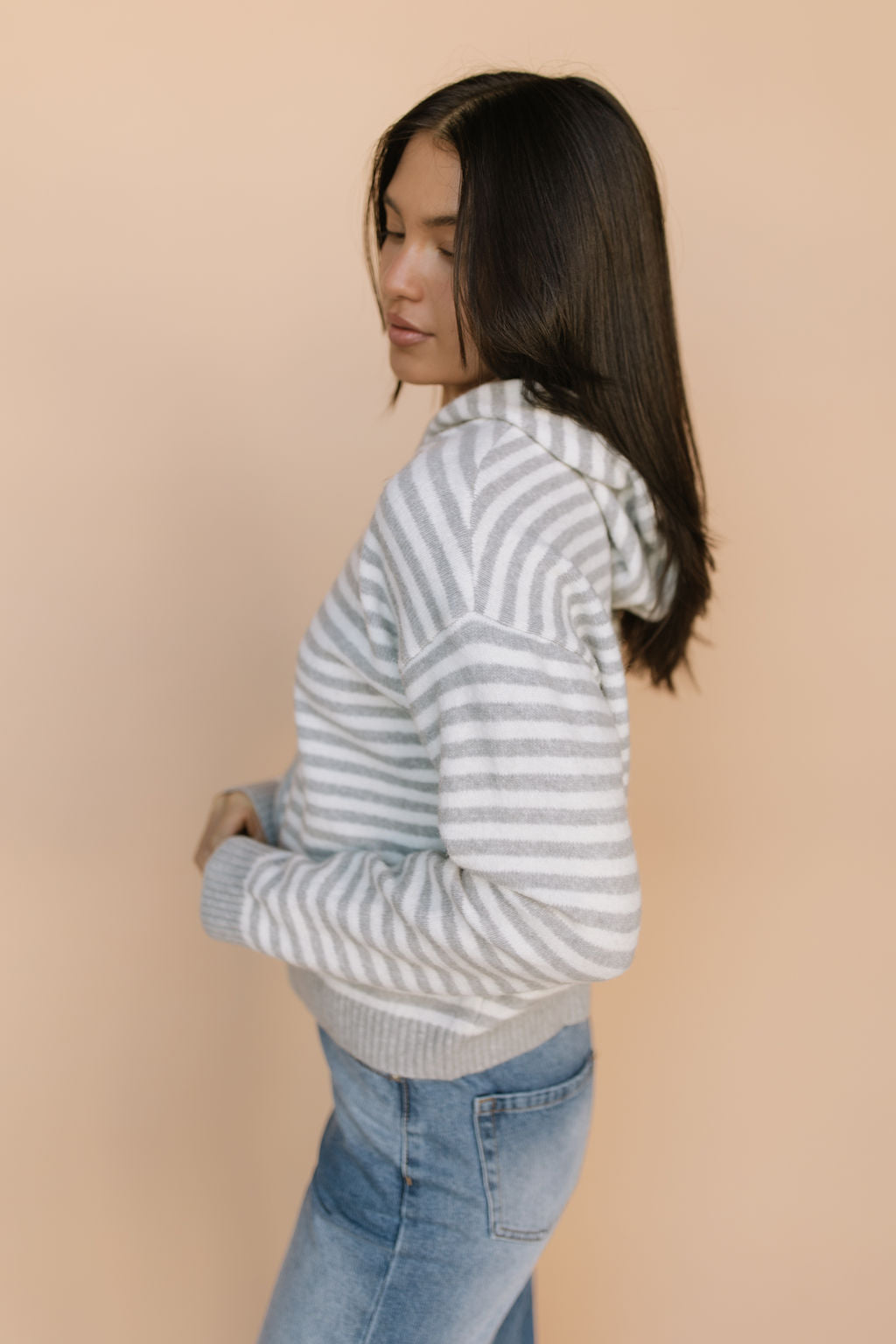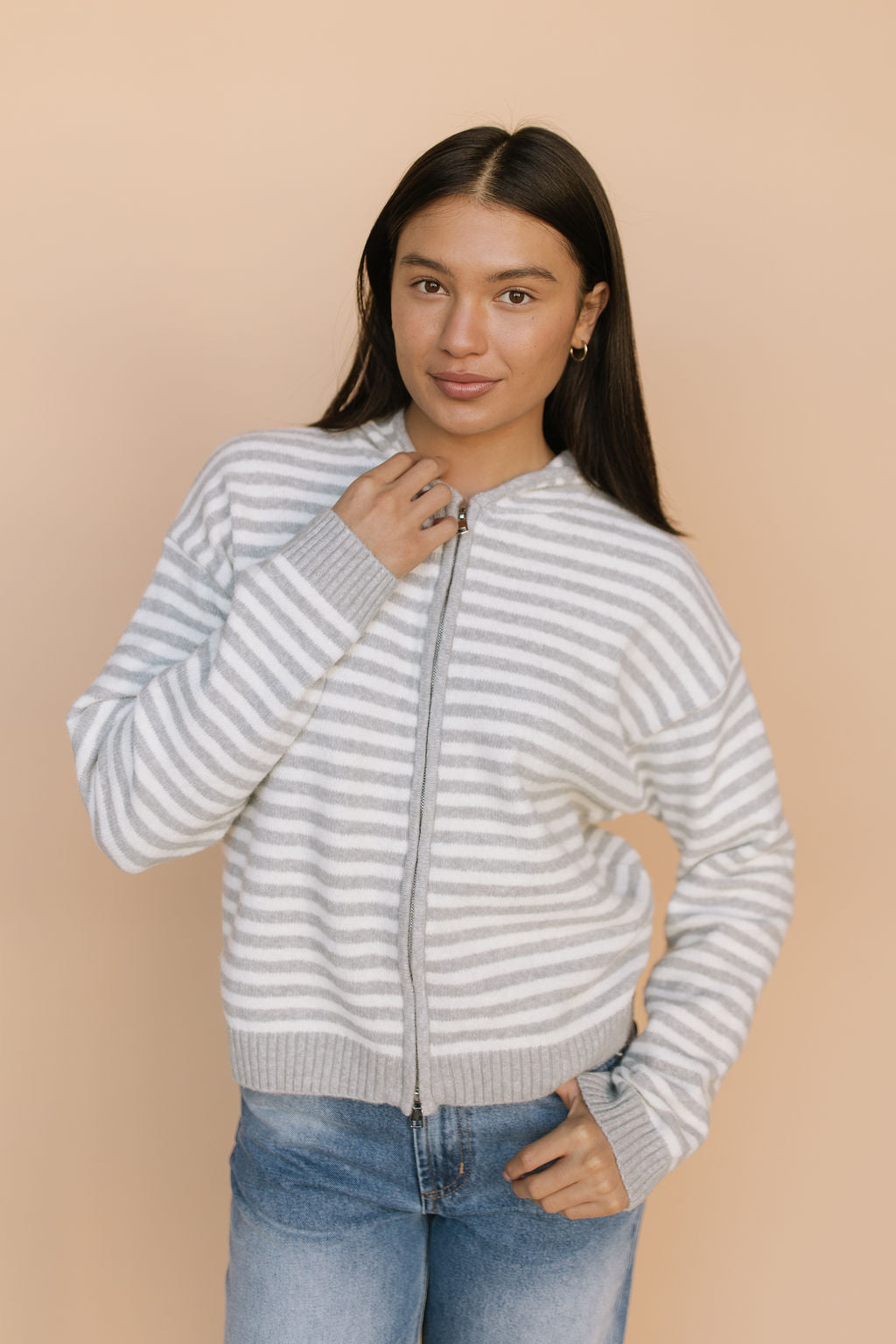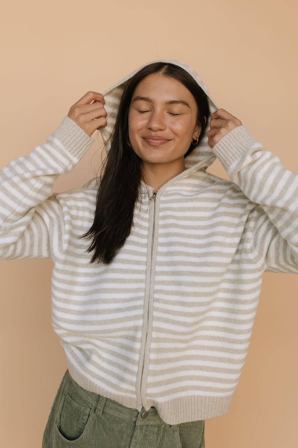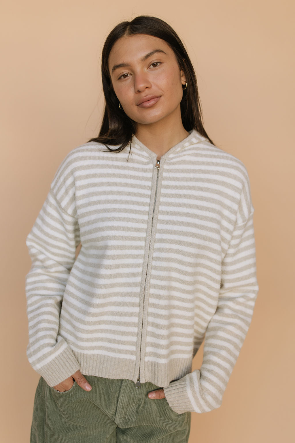 Myles Stripe Hooded Jacket in Latte