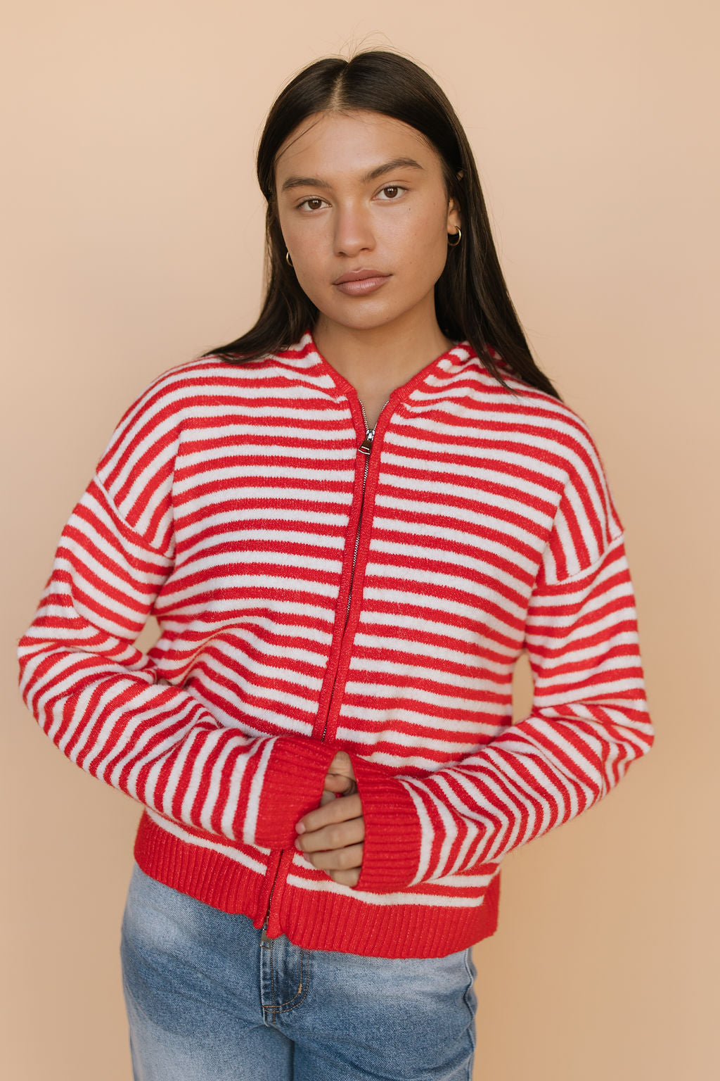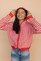 Myles Stripe Hooded Jacket in Red