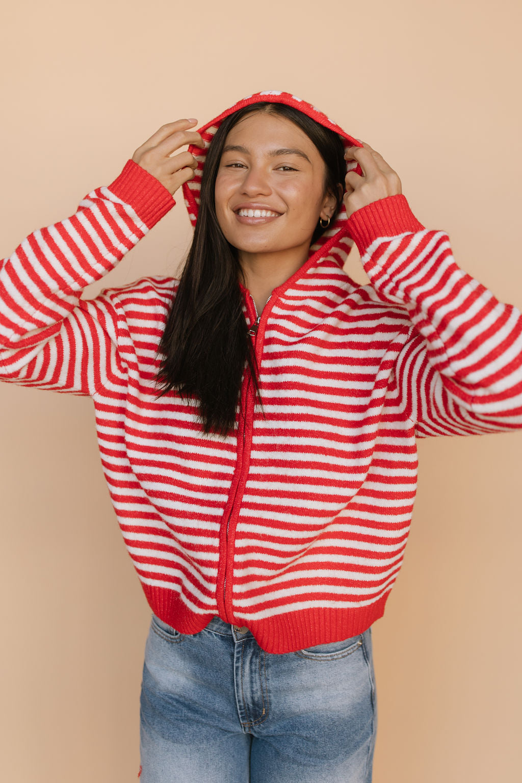 Main details: Soft stripe hoodie jacket. Nursing friendly