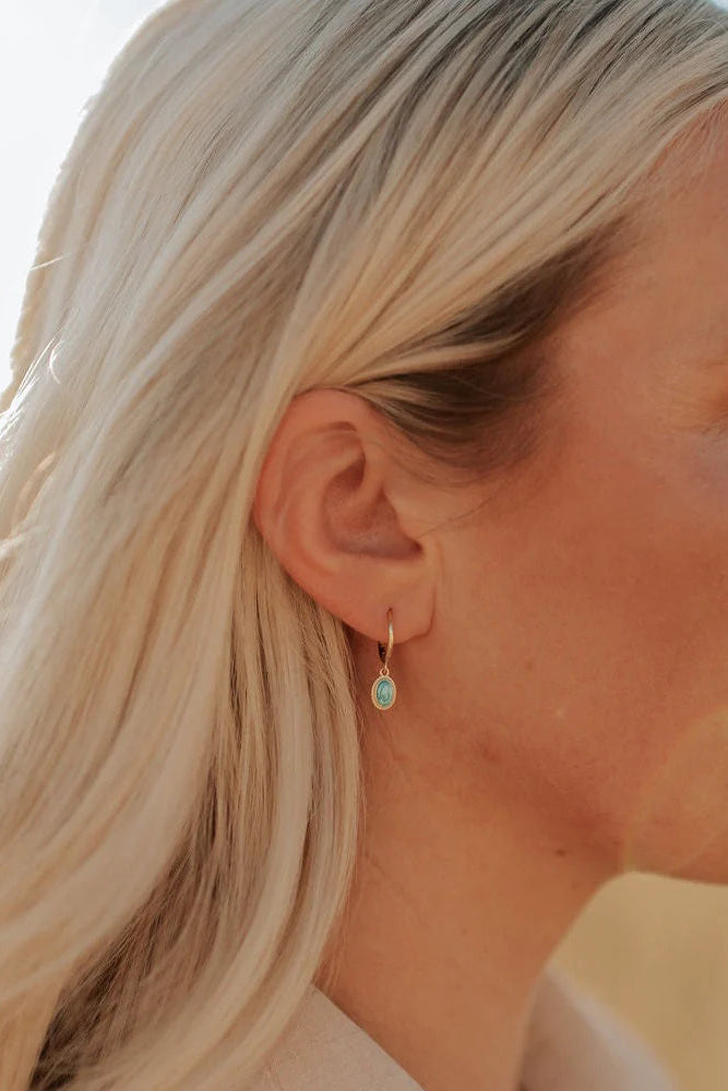 The Riley Turquoise Hoops are the perfect accessory for any outfit. Available in high quality sterling silver and gold vermeil, these huggies are hypoallergenic, good for sensitive skin, and wear and tarnish resistant.