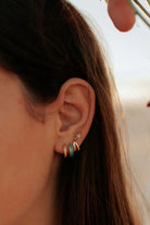 The Sadie Double Band Hoops are made of high quality gold vermeil metal and are hypoallergenic and good for sensitive ears. They have a cute, thick double band and are a timeless accessory that goes with anything! The exterior diameter on these hoops is 11 mm.