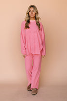 Porter Fleece Stripe Pants in Pink
