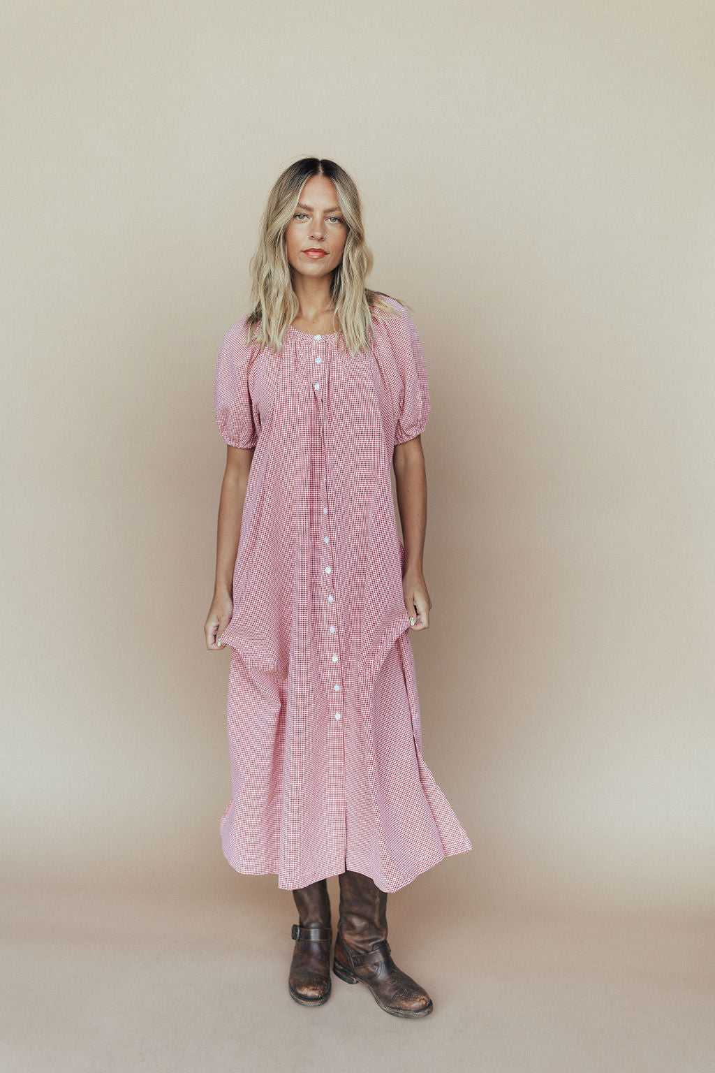 Eliza Gingham Maxi Dress in Red