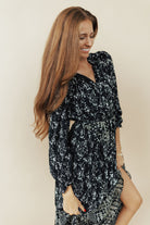 Our sizing suggestion: TTS or size up for room in bust. Nursing & Bump friendly