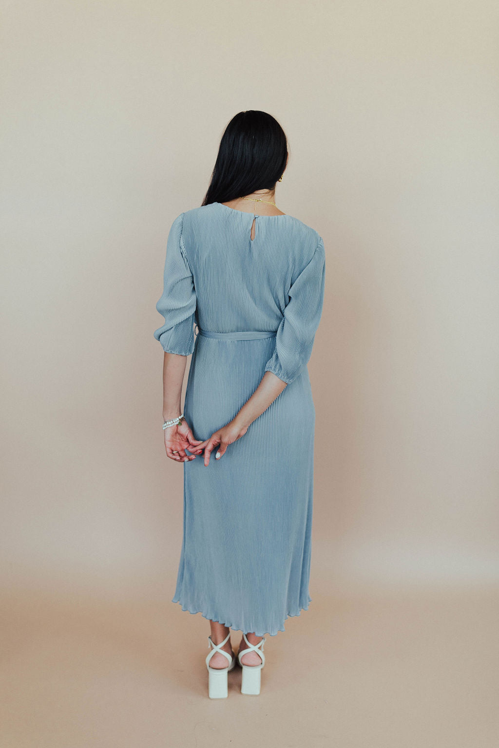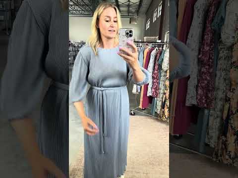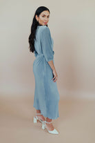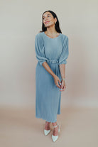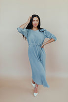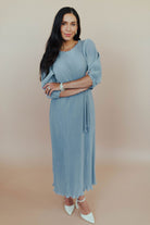Nicole Pleated Midi in Dusty Blue