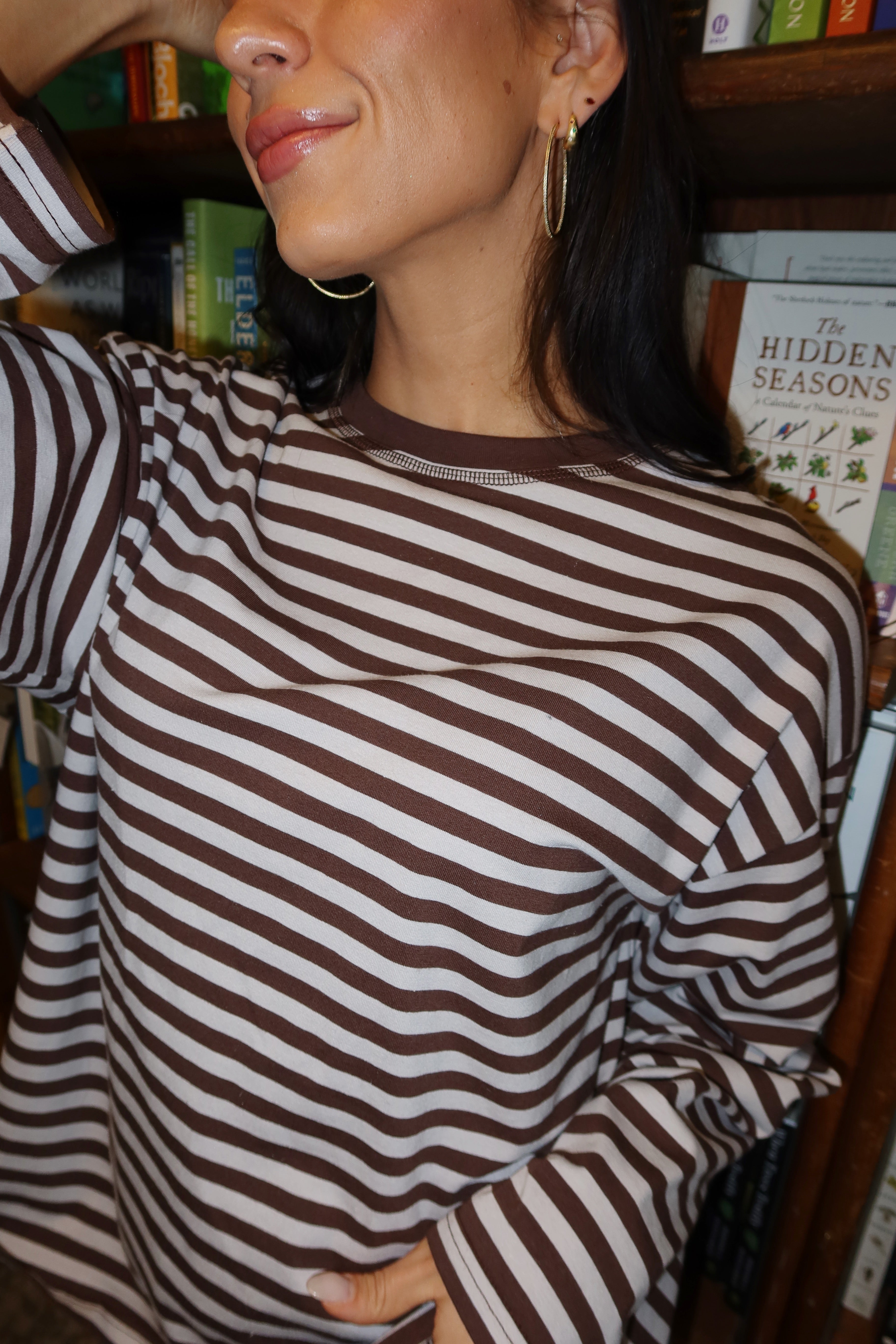 Piper Short Sleeve Cardigan in Blue/Brown Stripe