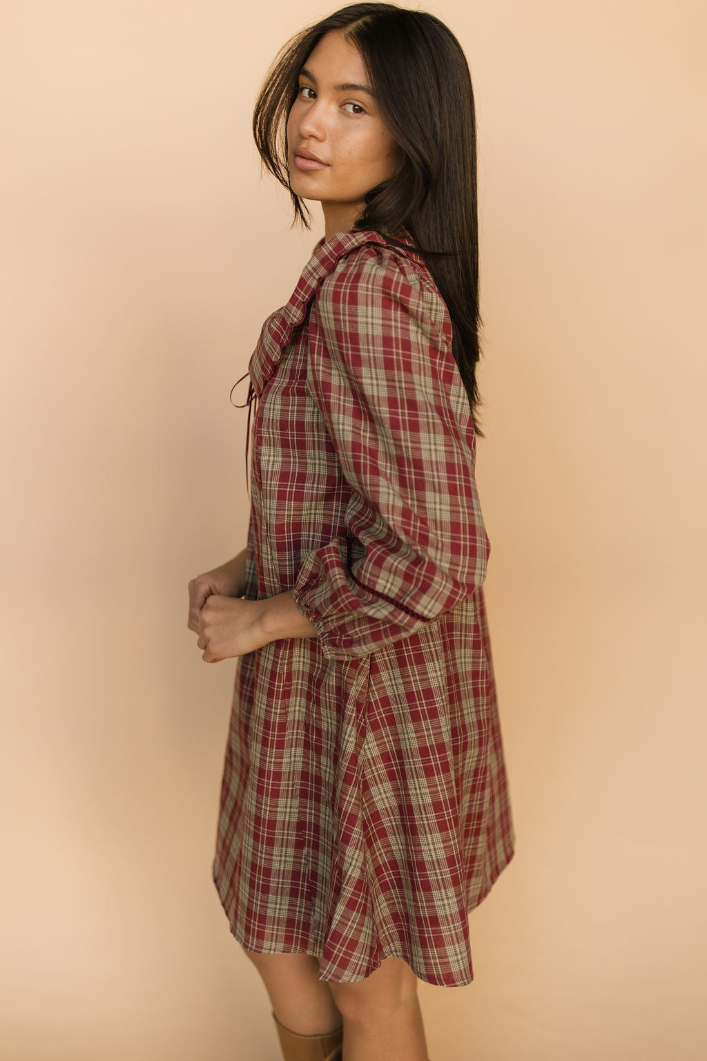 Madison Plaid Shift Dress in Red