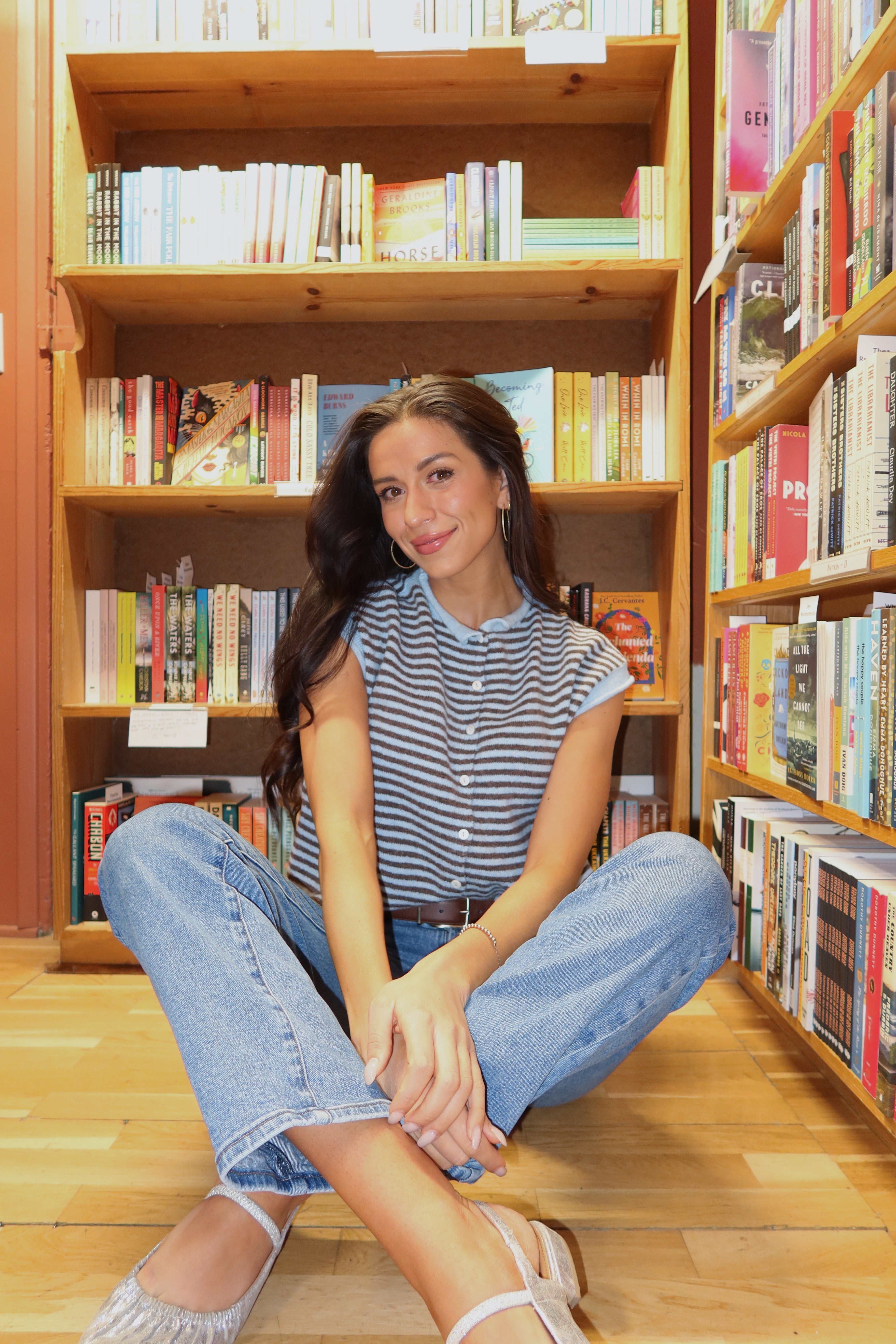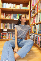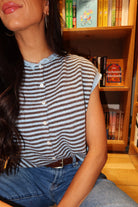 Piper Short Sleeve Cardigan in Blue/Brown Stripe